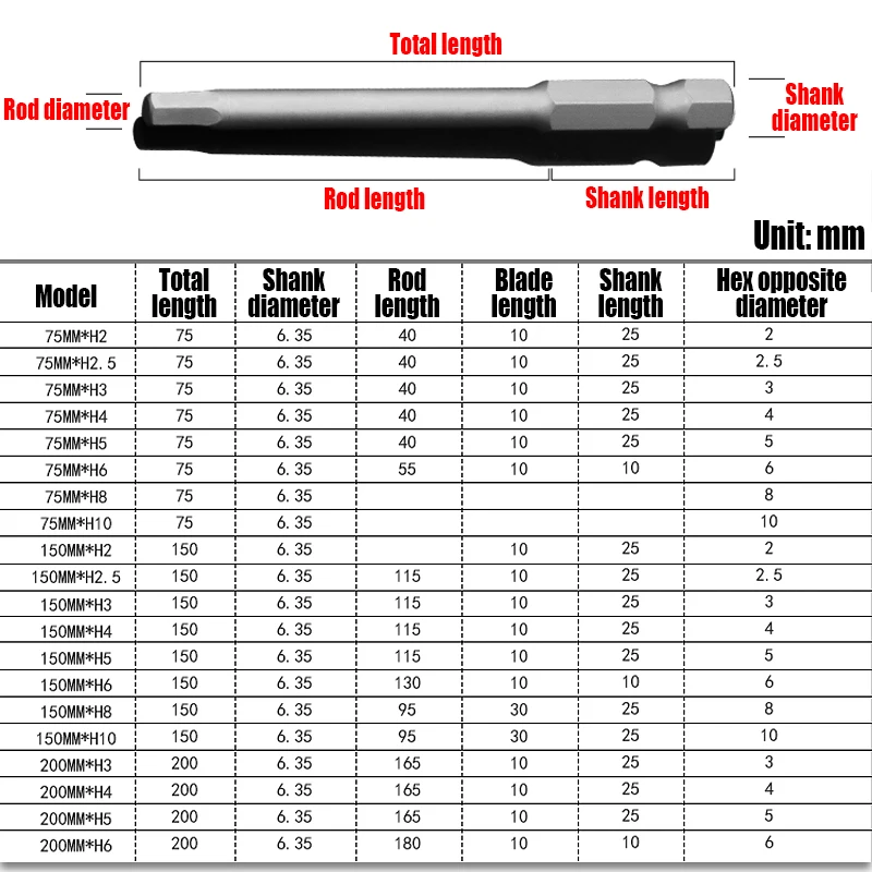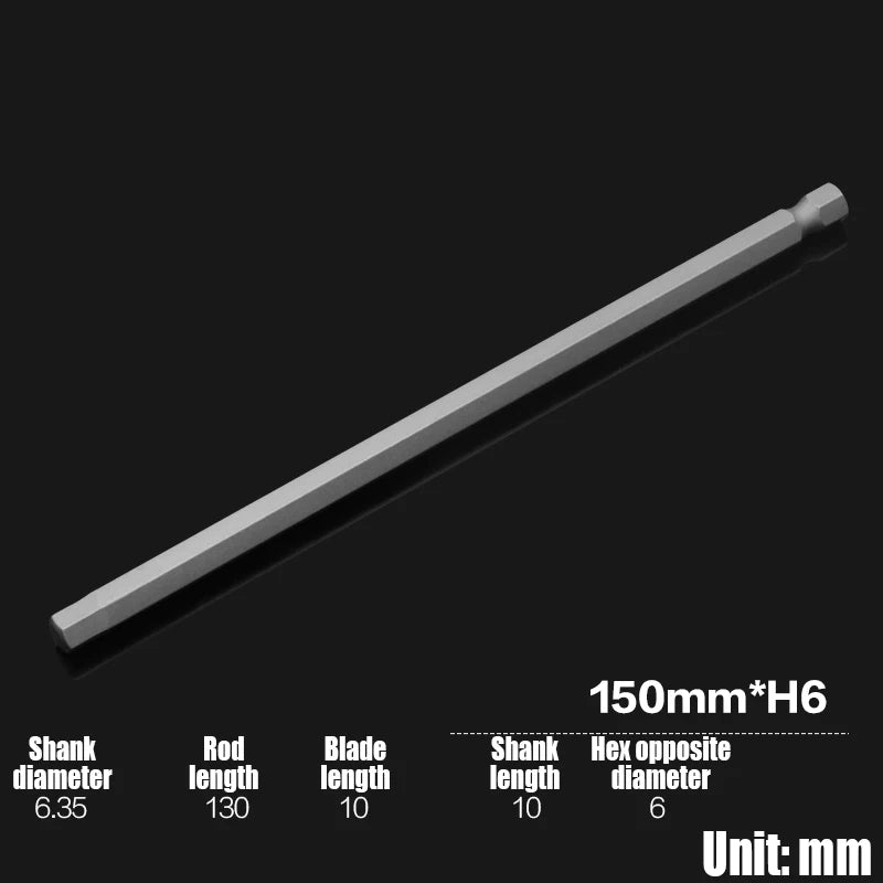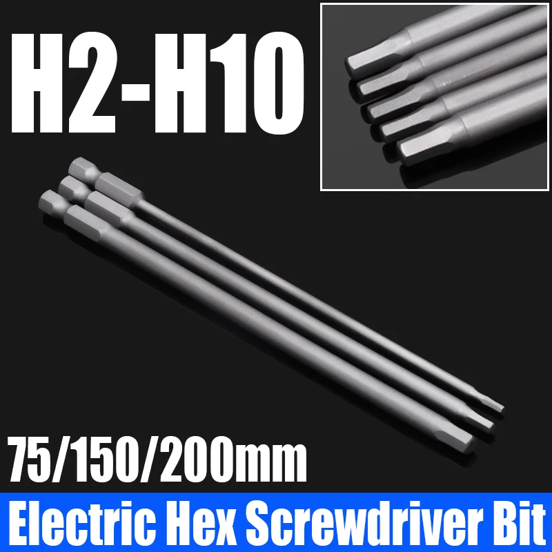Foret Allen à tête hexagonale H2-H10, 75mm, 150mm, 200mm, embout de tournevis hexagonal électrique, tête de lot magnétique, tournevis à percussion, 1 pièce