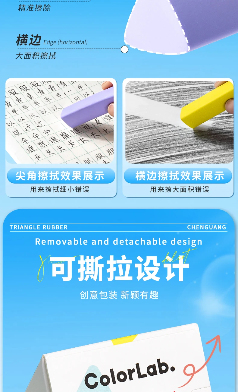 Gomme M&G, gomme triangulaire, gomme à crayon,