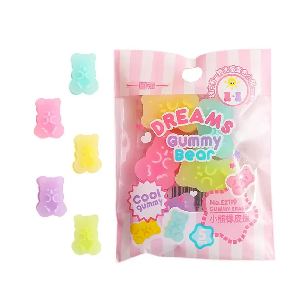 Gommes à crayon couleur gelée, 5 pièces, ours mignon, outil d'écriture pour enfants, papeterie coréenne, fournitures scolaires et de bureau
