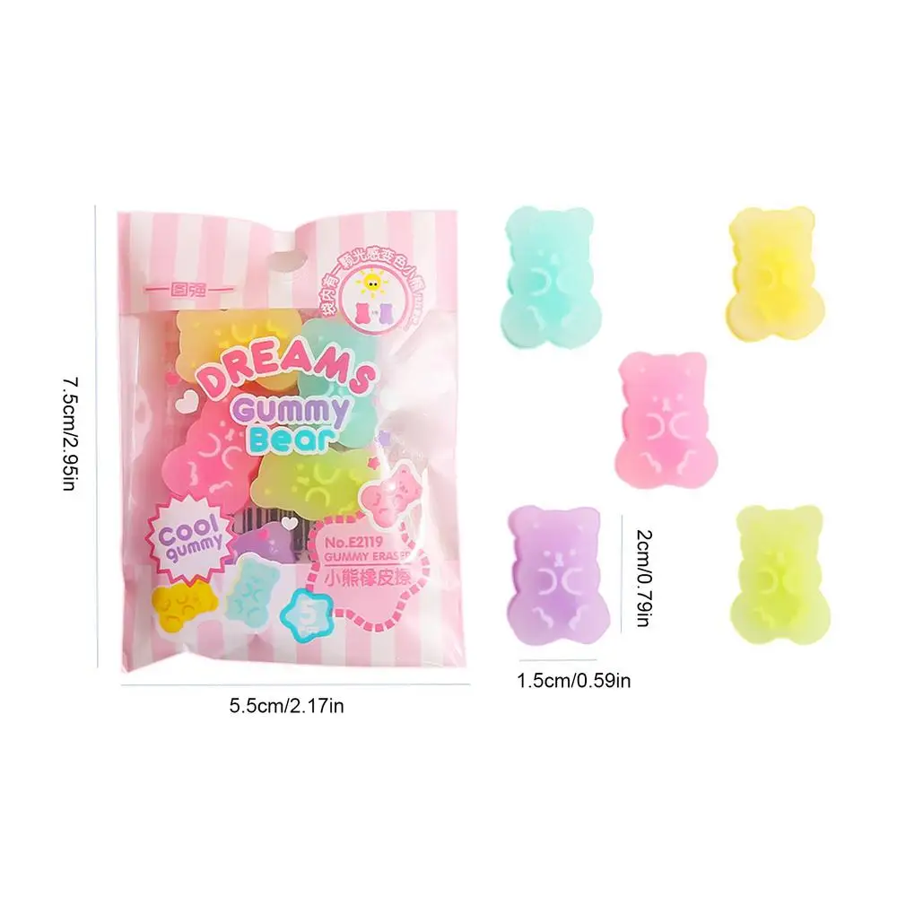 5 pièces gommes de couleur gelée mignon ours crayon gomme en caoutchouc pour enfants outil d'écriture papeterie coréenne fournitures de bureau scolaire