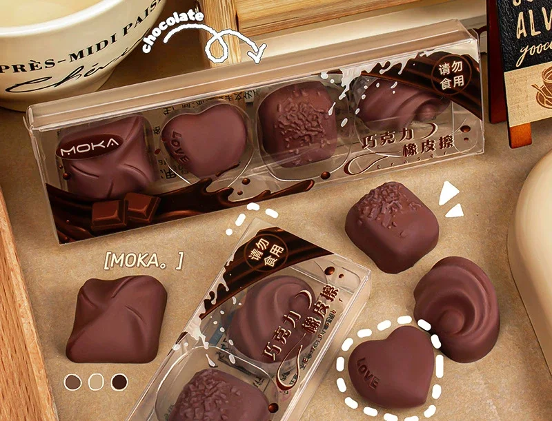Gommes à crayon Style chocolat, Design créatif, Simulation de papeterie au chocolat, fournitures scolaires pour étudiants Kawaii, 4 pièces/ensemble