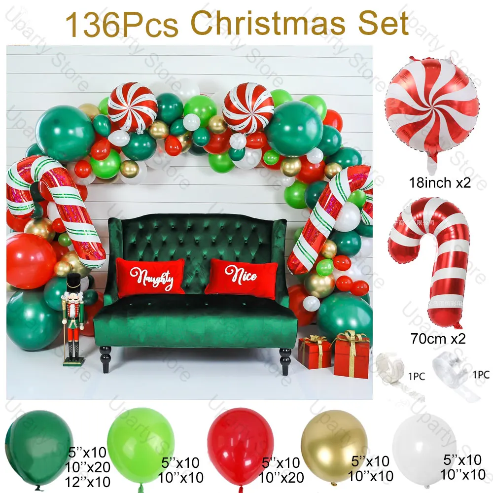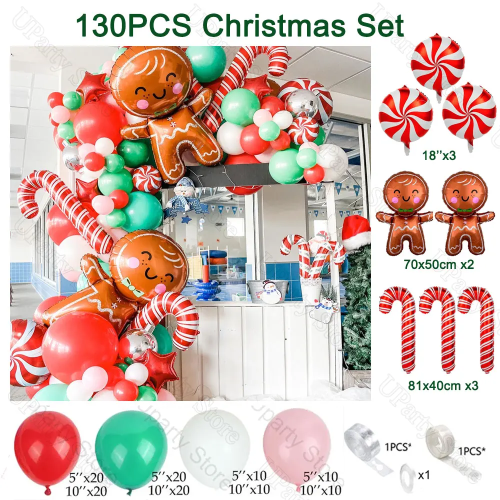 Noël bonbons ballons guirlande wapiti cadeau canne en bonbon pain d'épice homme père noël ballons arc pour la fête de noël décor faveur