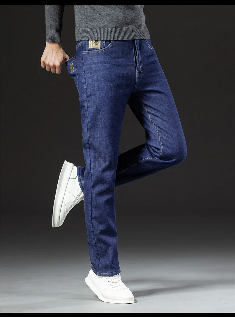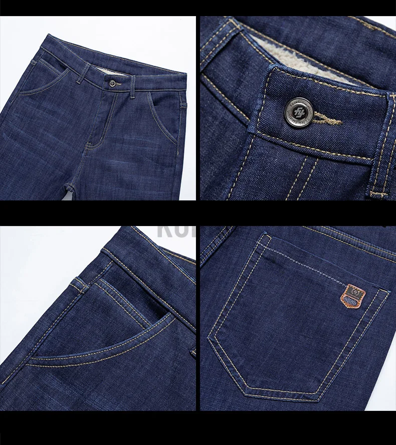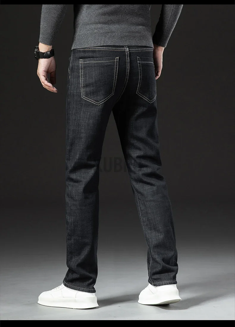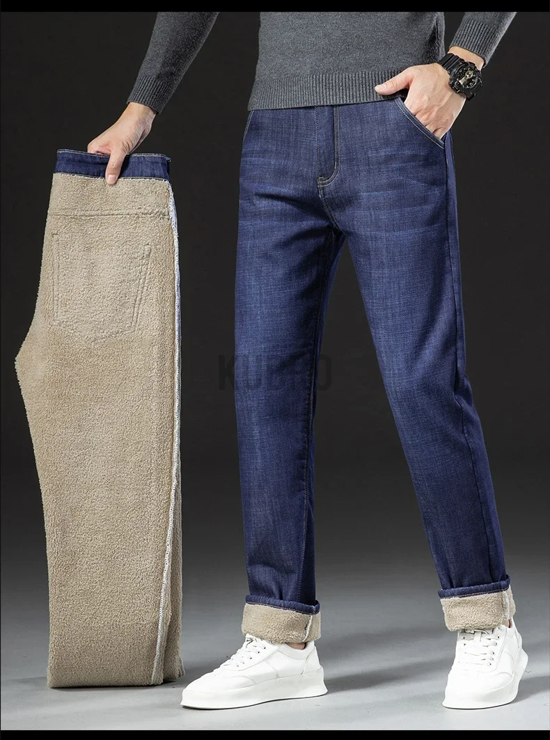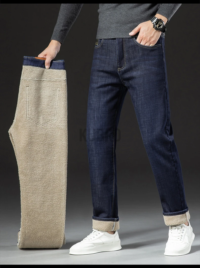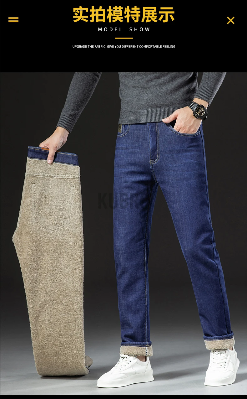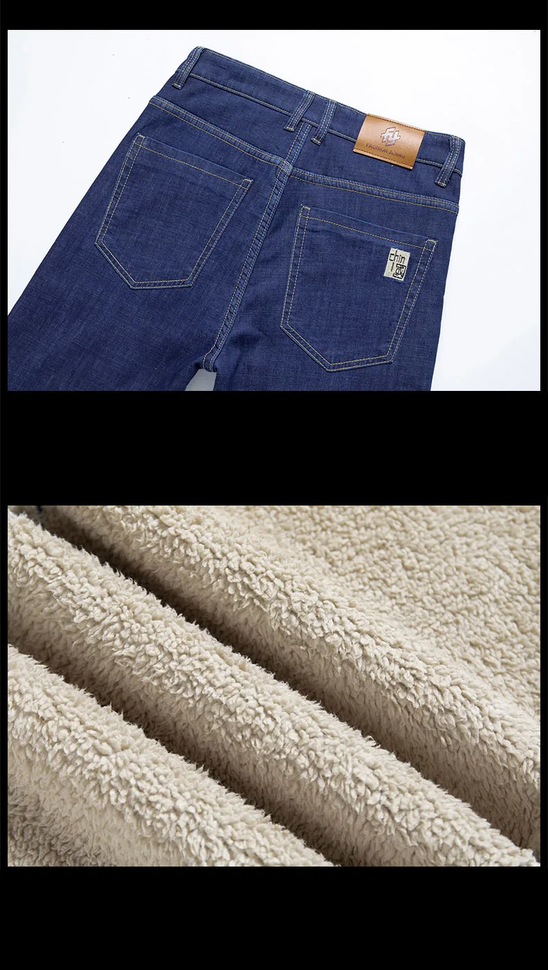 Hiver agneau peluches Denim pantalon droit hommes épaissir grande taille 40 jean taille haute Stretch jean doublé polaire chaud mince Vaqueros