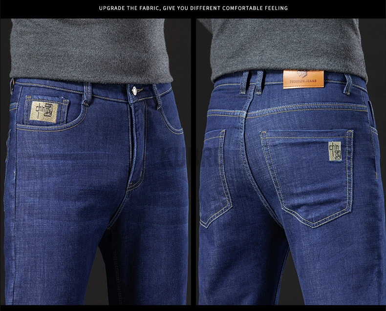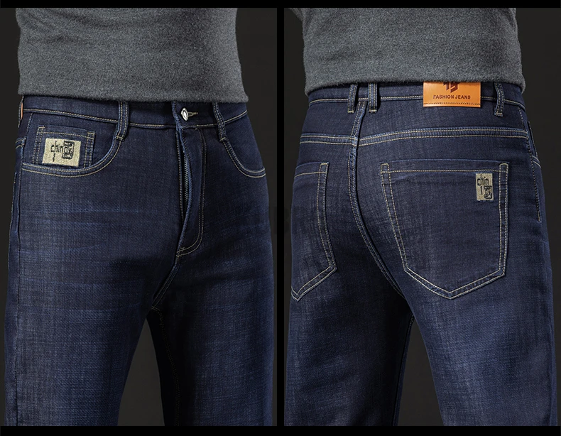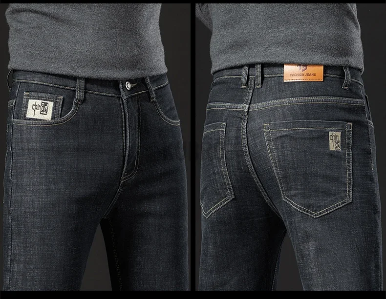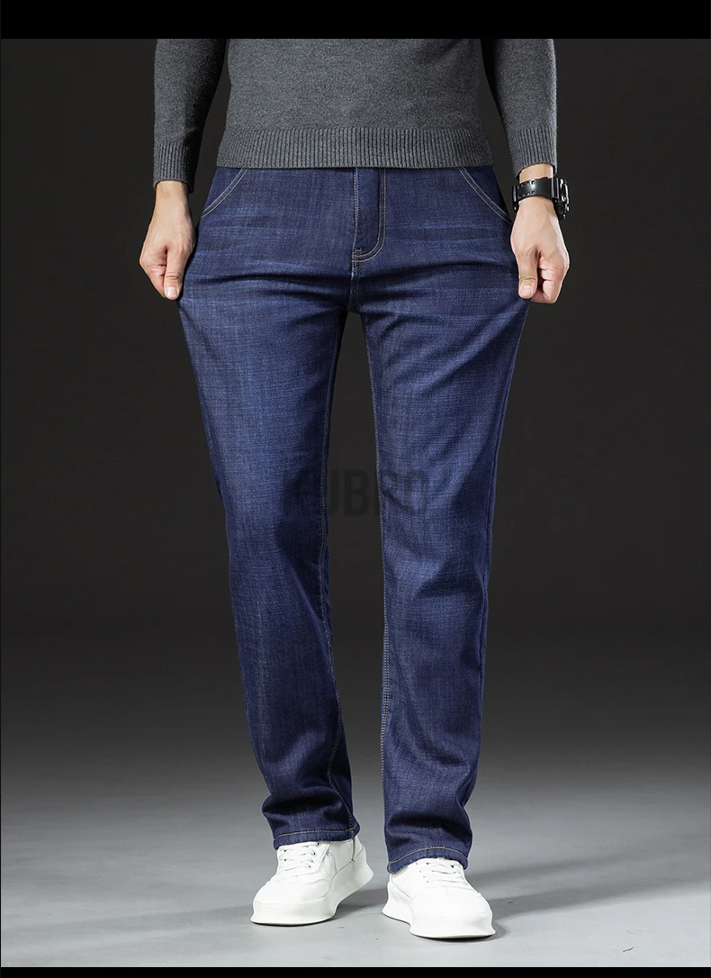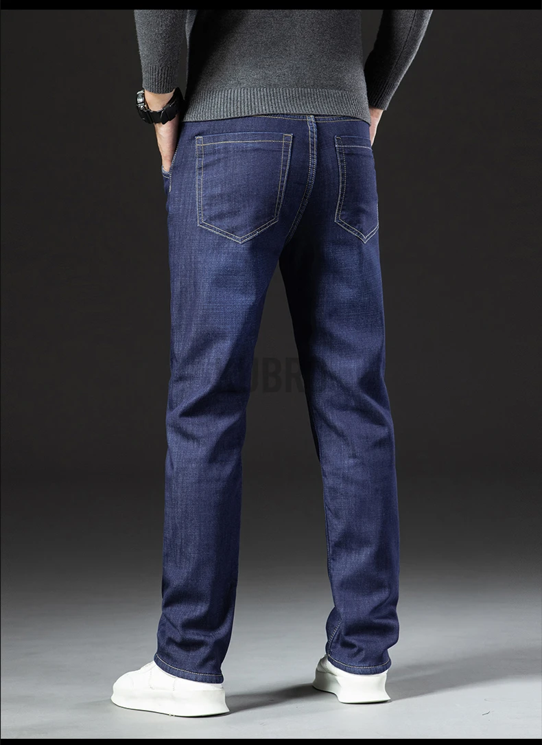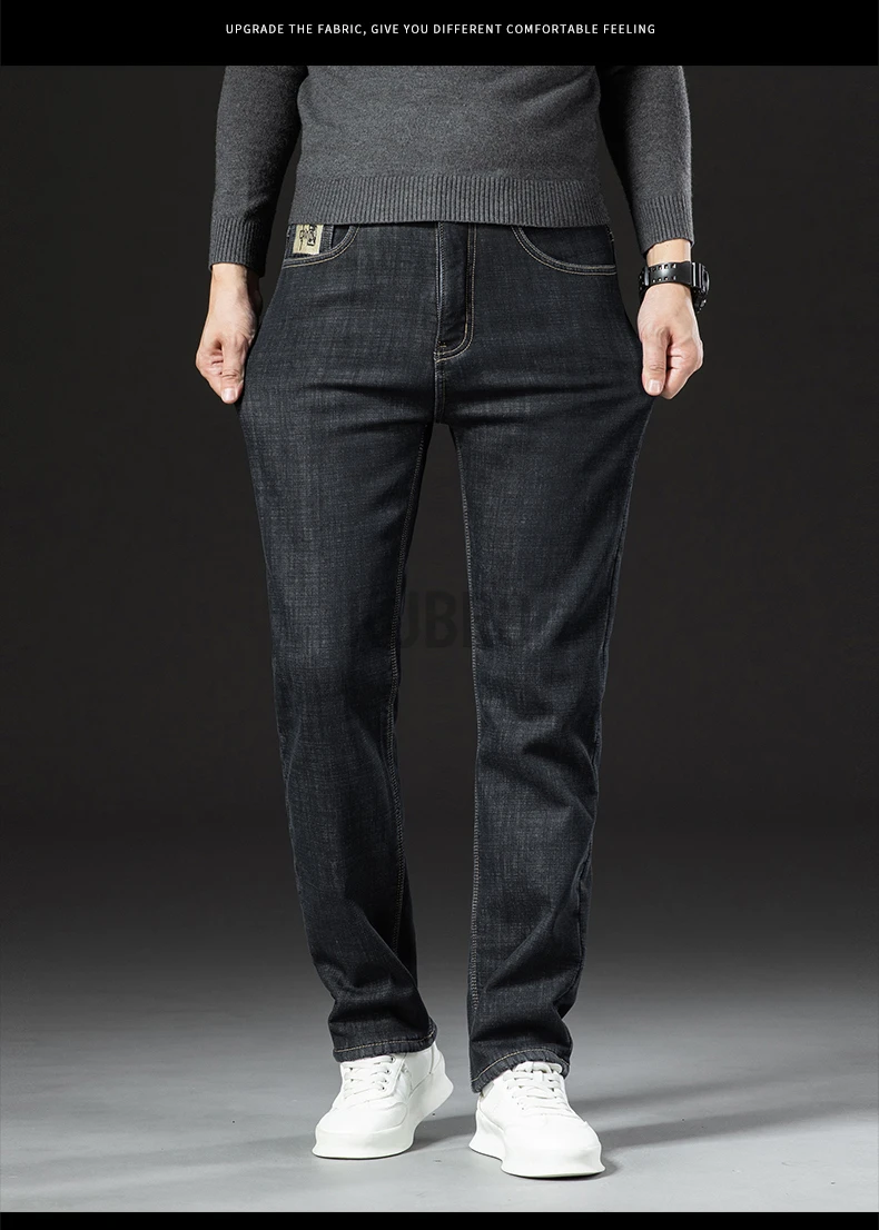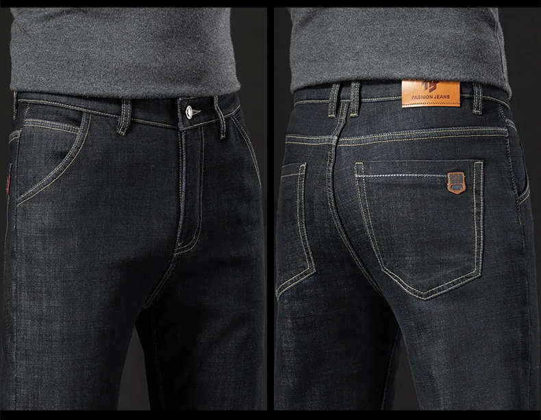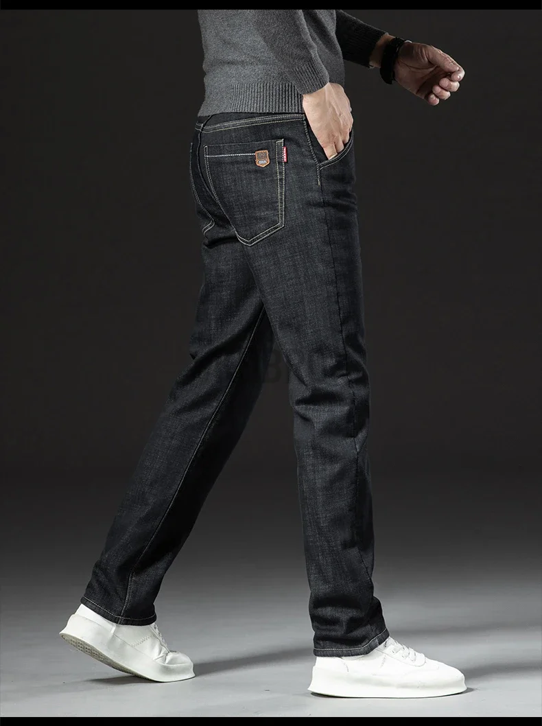 Hiver agneau peluches Denim pantalon droit hommes épaissir grande taille 40 jean taille haute Stretch jean doublé polaire chaud mince Vaqueros