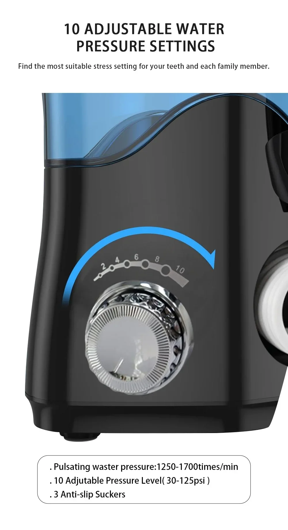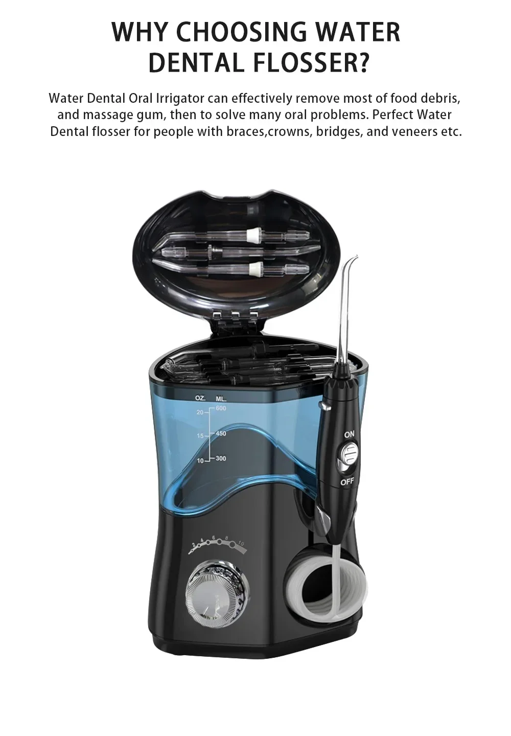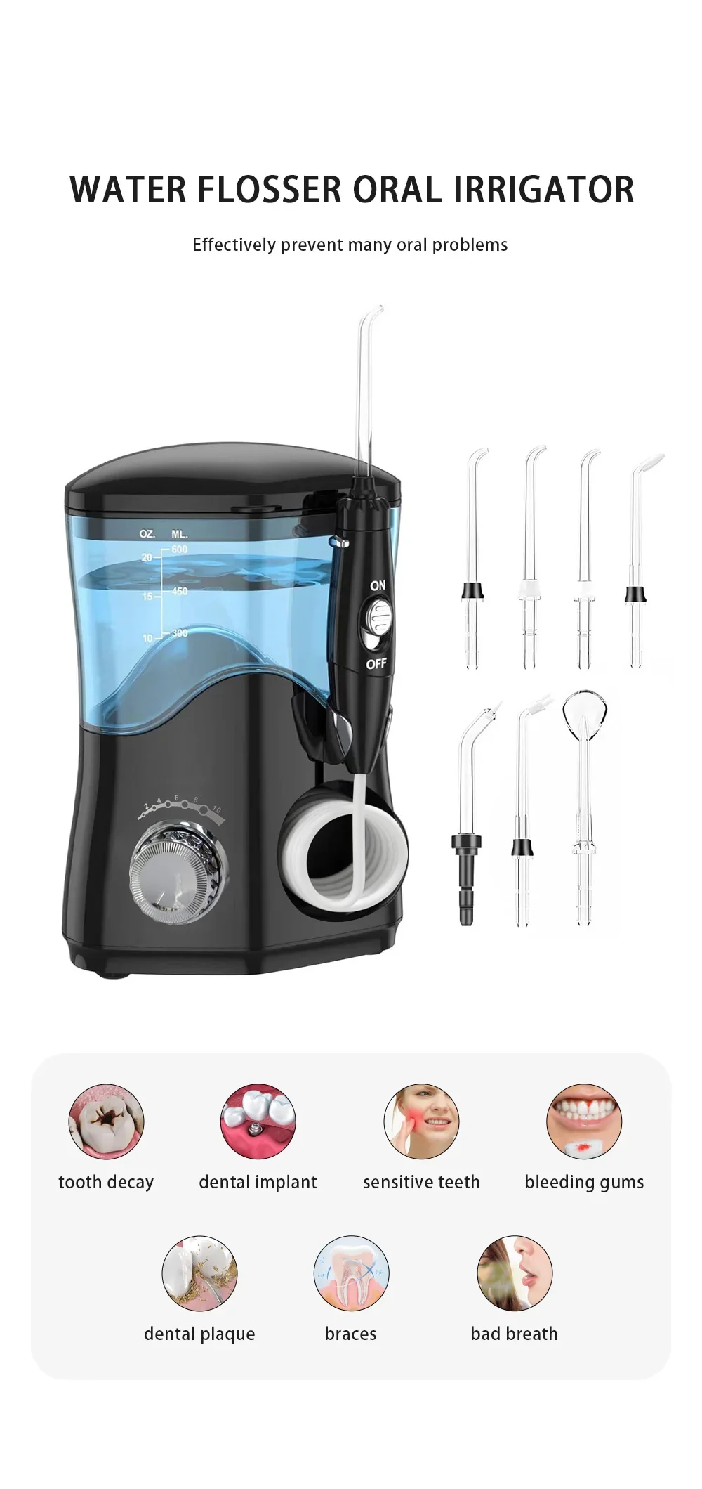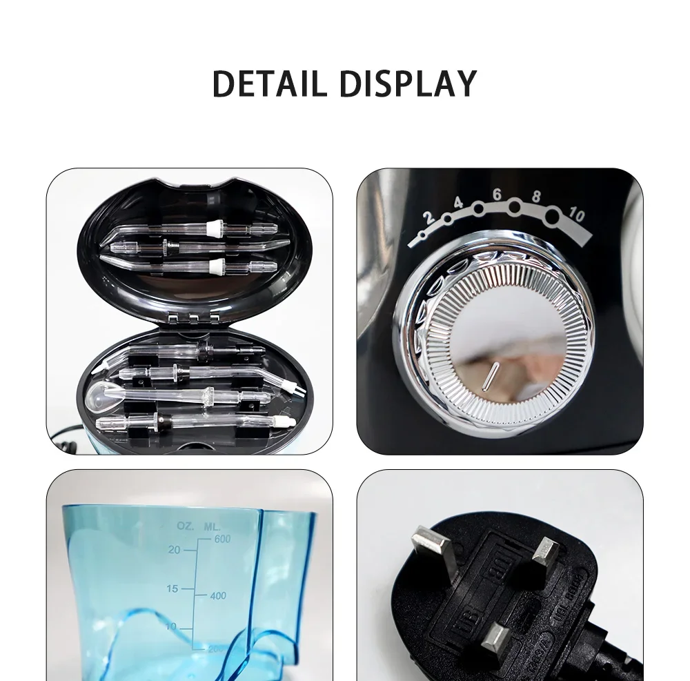 Hydropulseur professionnel 600ML avec 7 buses, irrigateur buccal à haute impulsion pour le blanchiment des dents, les accolades, les Implants, soins des gencives portables