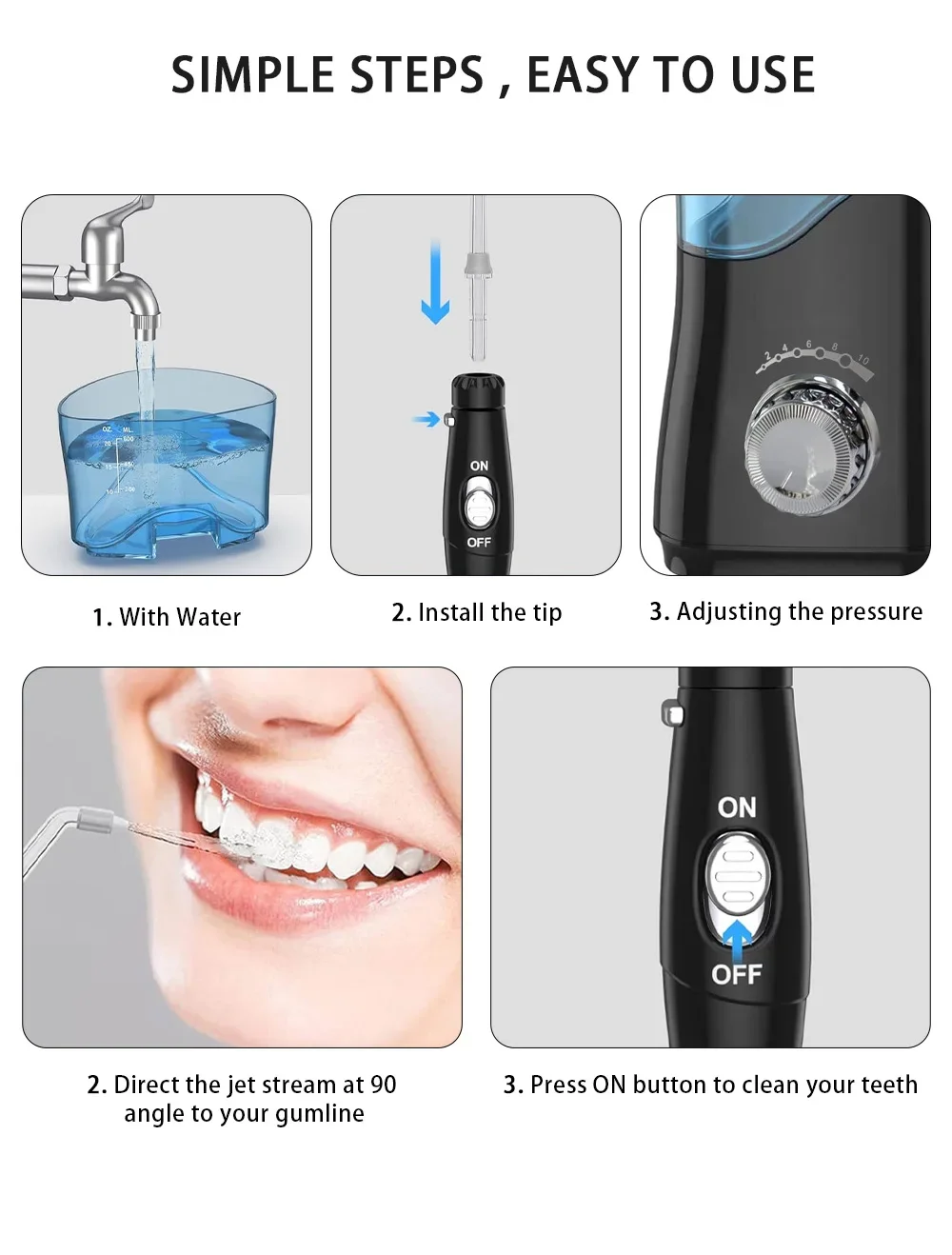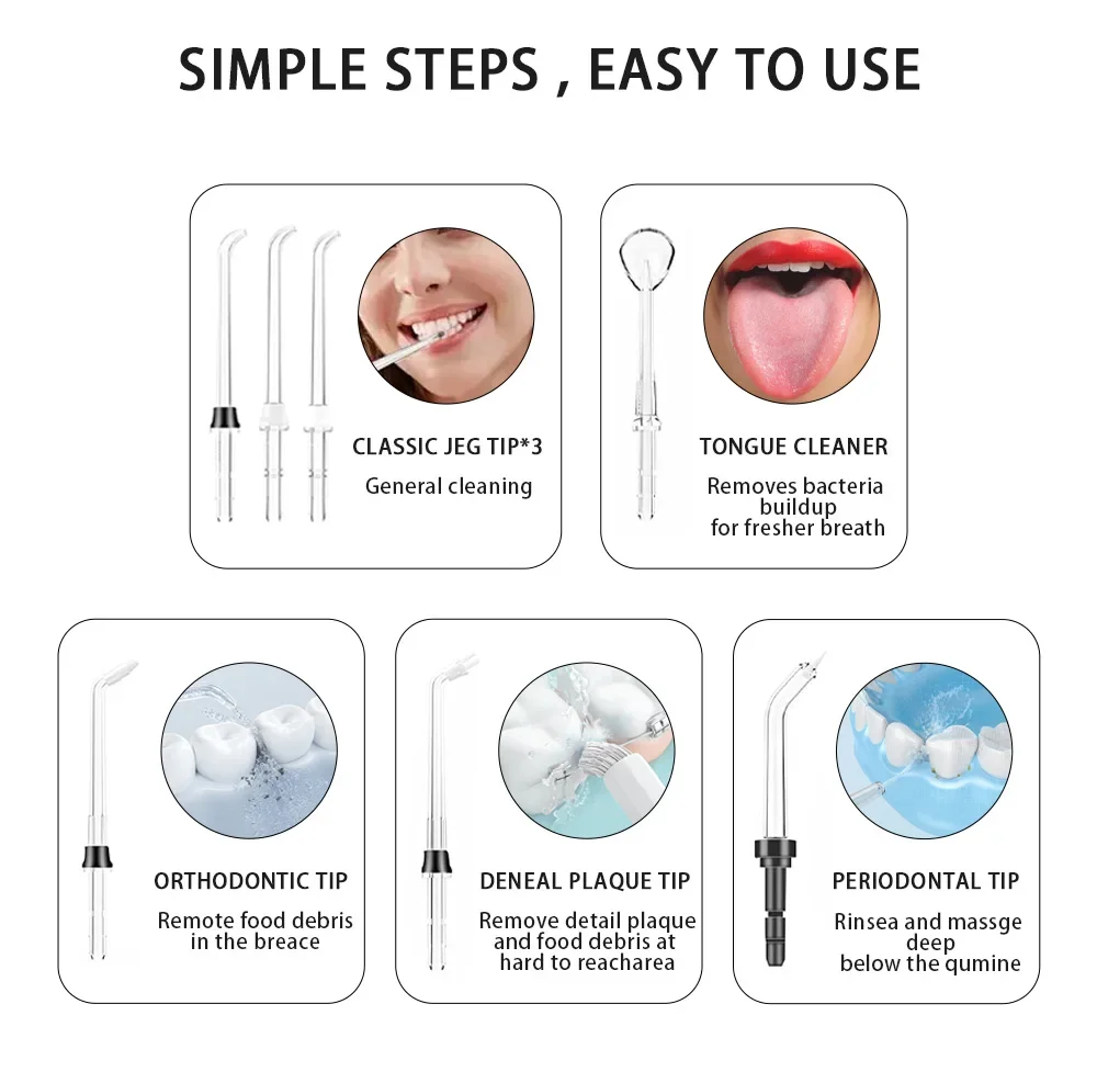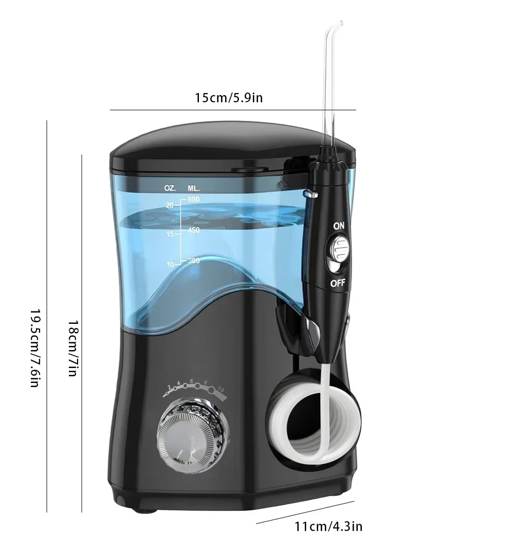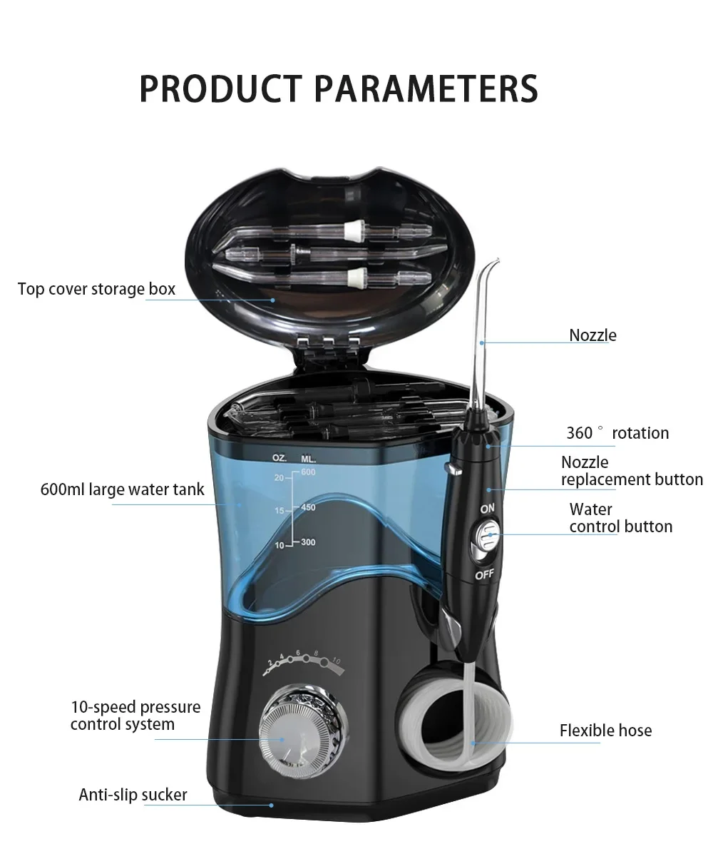 Hydropulseur professionnel 600ML avec 7 buses, irrigateur buccal à haute impulsion pour le blanchiment des dents, les accolades, les Implants, soins des gencives portables
