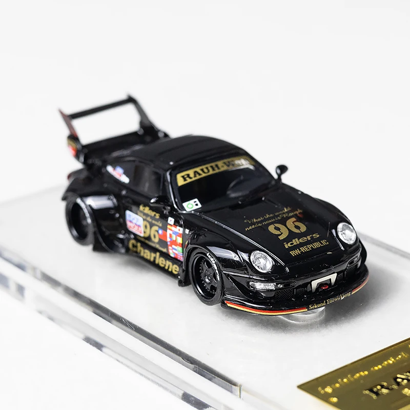 IG Ignition 1: 64 RWB 993 noir, étiquette dorée à queue haute, modèle de voiture en résine, ornement de collection