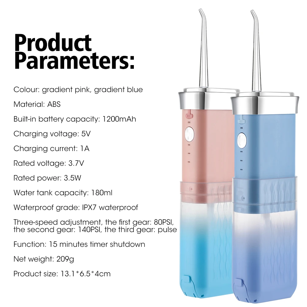2. La machine de nettoyage des dents sans fil est compacte et portable.Il est facile à ranger et à transporter, offrant une expérience de spa interdentaire rafraîchissante à tout moment et en tout lieu.