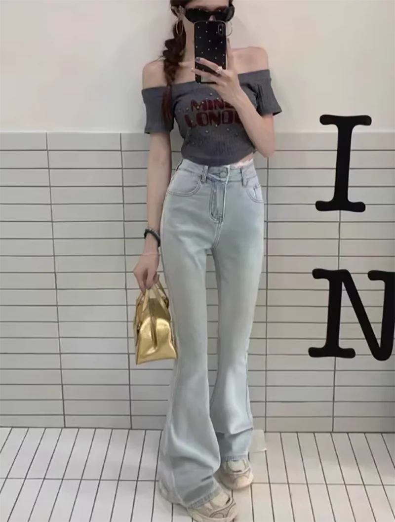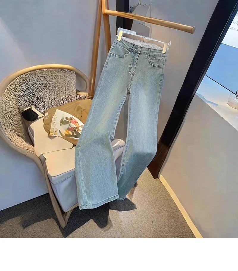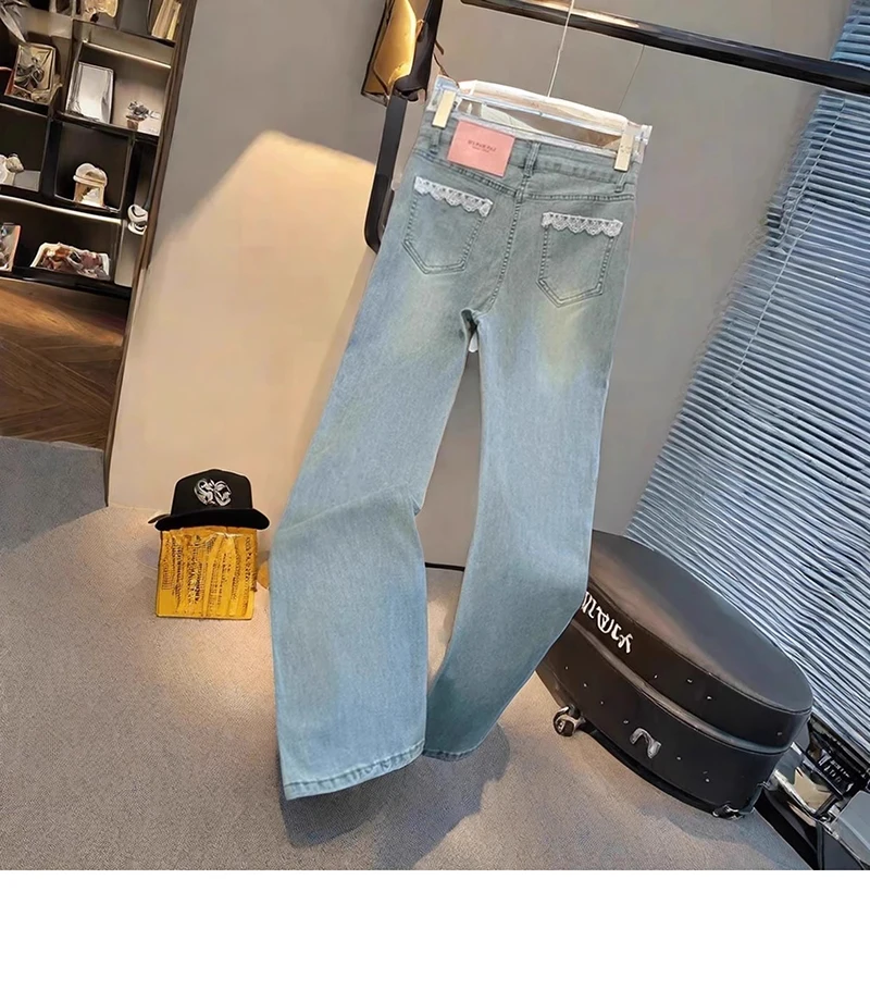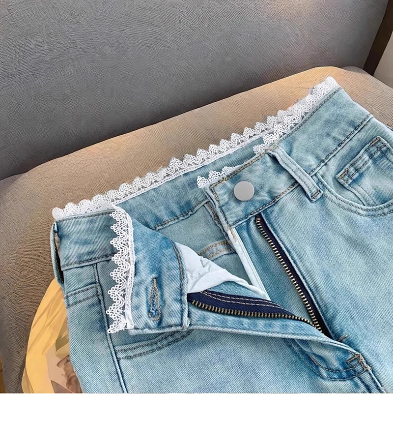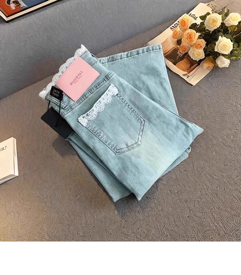 Jean Patchwork en dentelle pour femmes, coupe cintrée, taille haute, Micro pantalon évasé, Style coréen, décontracté, fermeture éclair, Denim, été