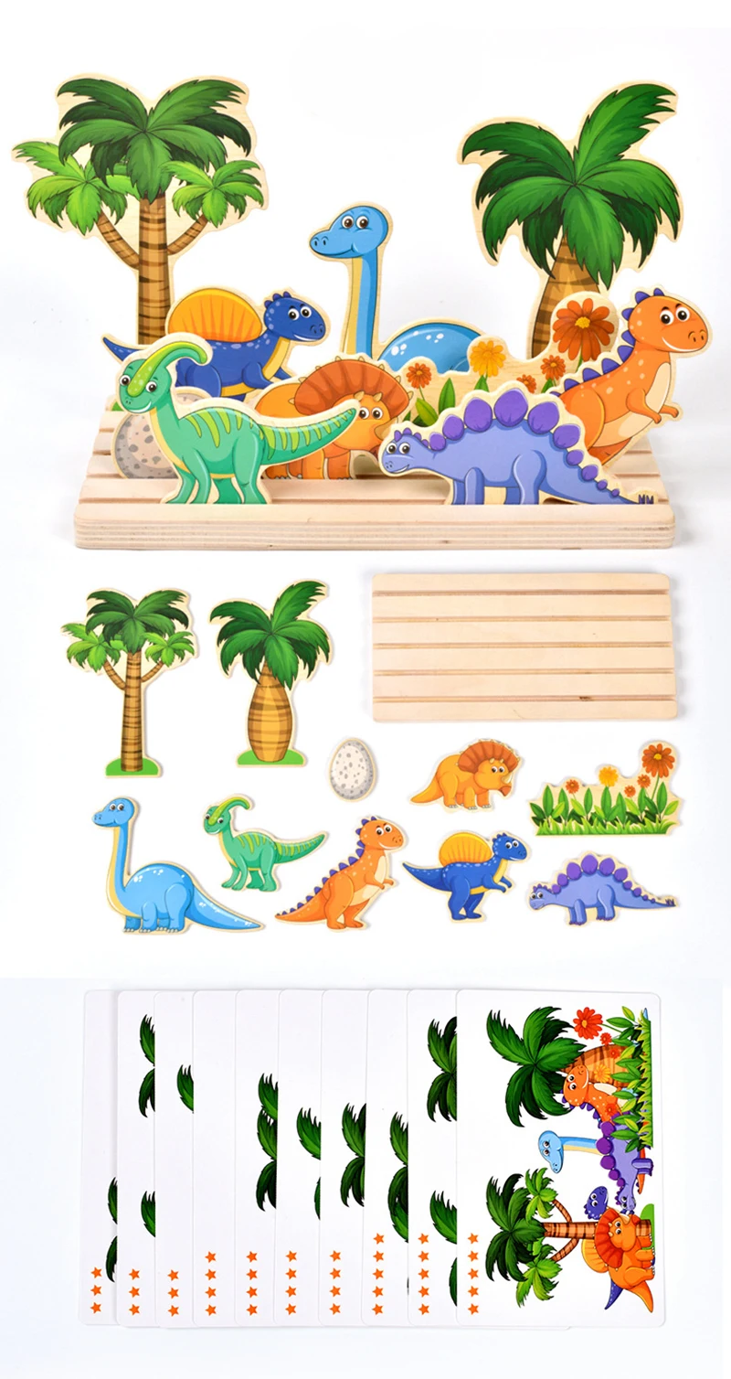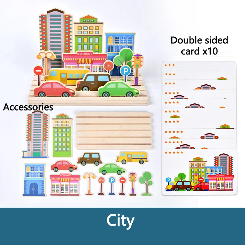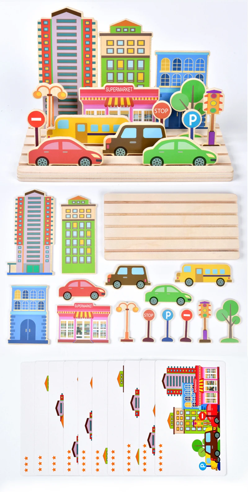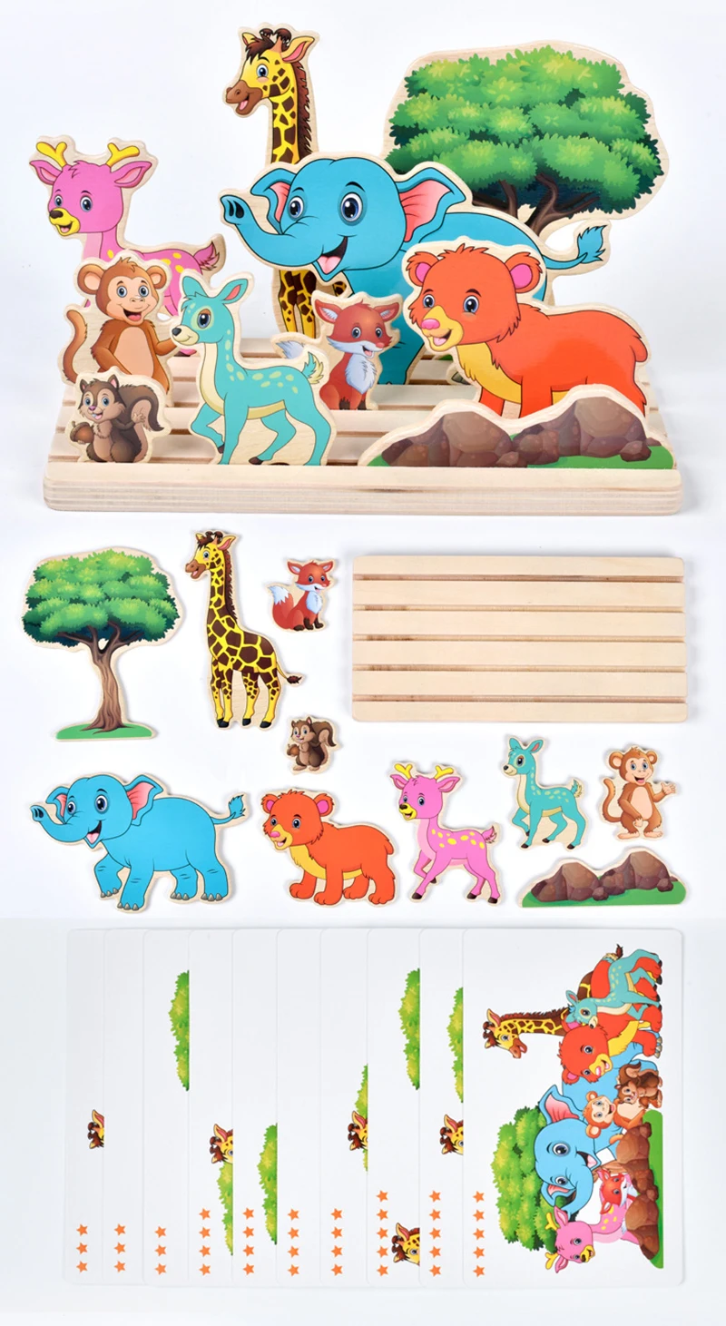 Jeu de pensée logique en bois pour enfants, puzzle de scène d'animaux de ferme, jeu de construction assorti, formation à l'imagination, jouets éducatifs Montessori