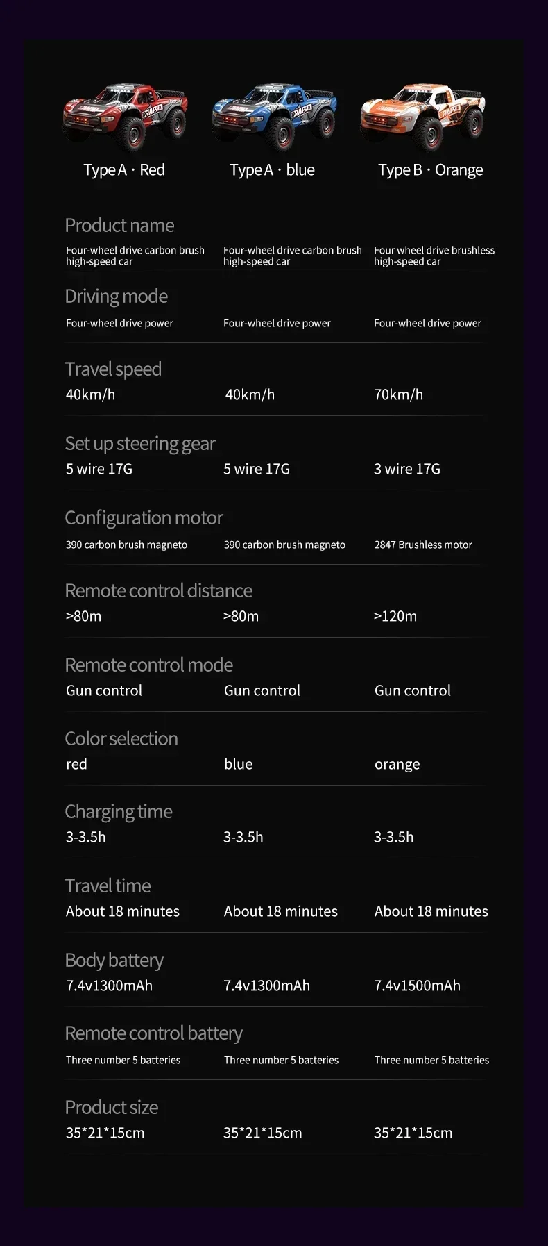 JJRC-Voiture de désert télécommandée pour enfants, véhicule de course à grande vitesse, camion tout-terrain 4 roues motrices, jouets pour garçons, Q130, 1/14g, 2.4