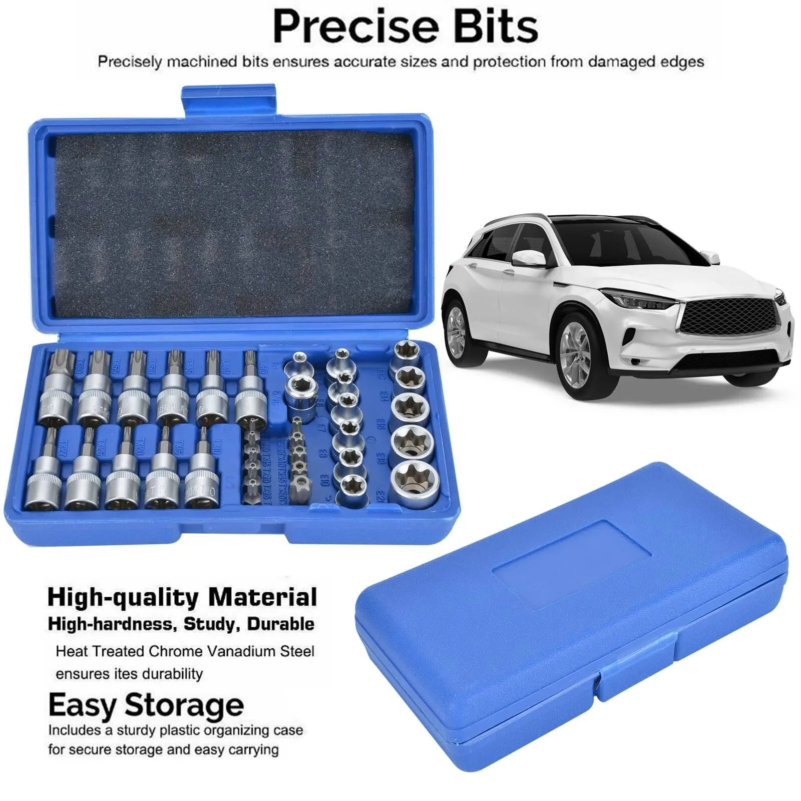 Kit automobile de douilles de réparation chromées, 34 pièces, entraînement mâle femelle Torx couple Tork Star Bit