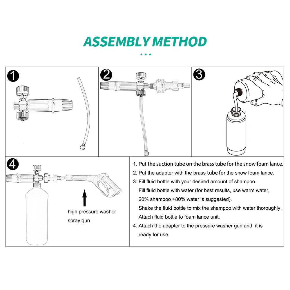 3.Étanchéité élevée : la machine de lavage de voiture a un corps de bouteille épais et une bonne propriété d'étanchéité de la buse, ce qui rend le pistolet à mousse de lavage de voiture étanche à l'eau.