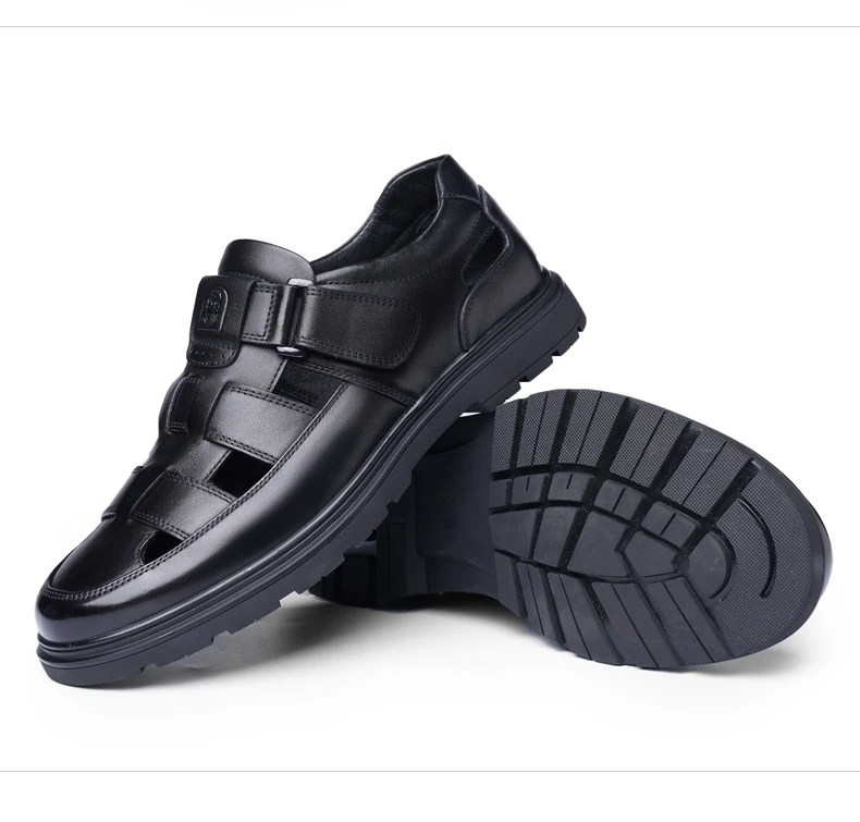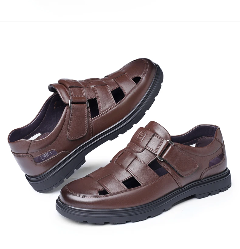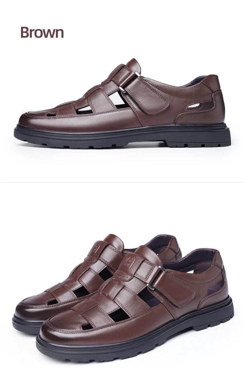 LAORENTOU-Sandales en cuir pour hommes, chaussures respirantes à trous creux, chaussures décontractées anti-ald et résistantes à l'usure