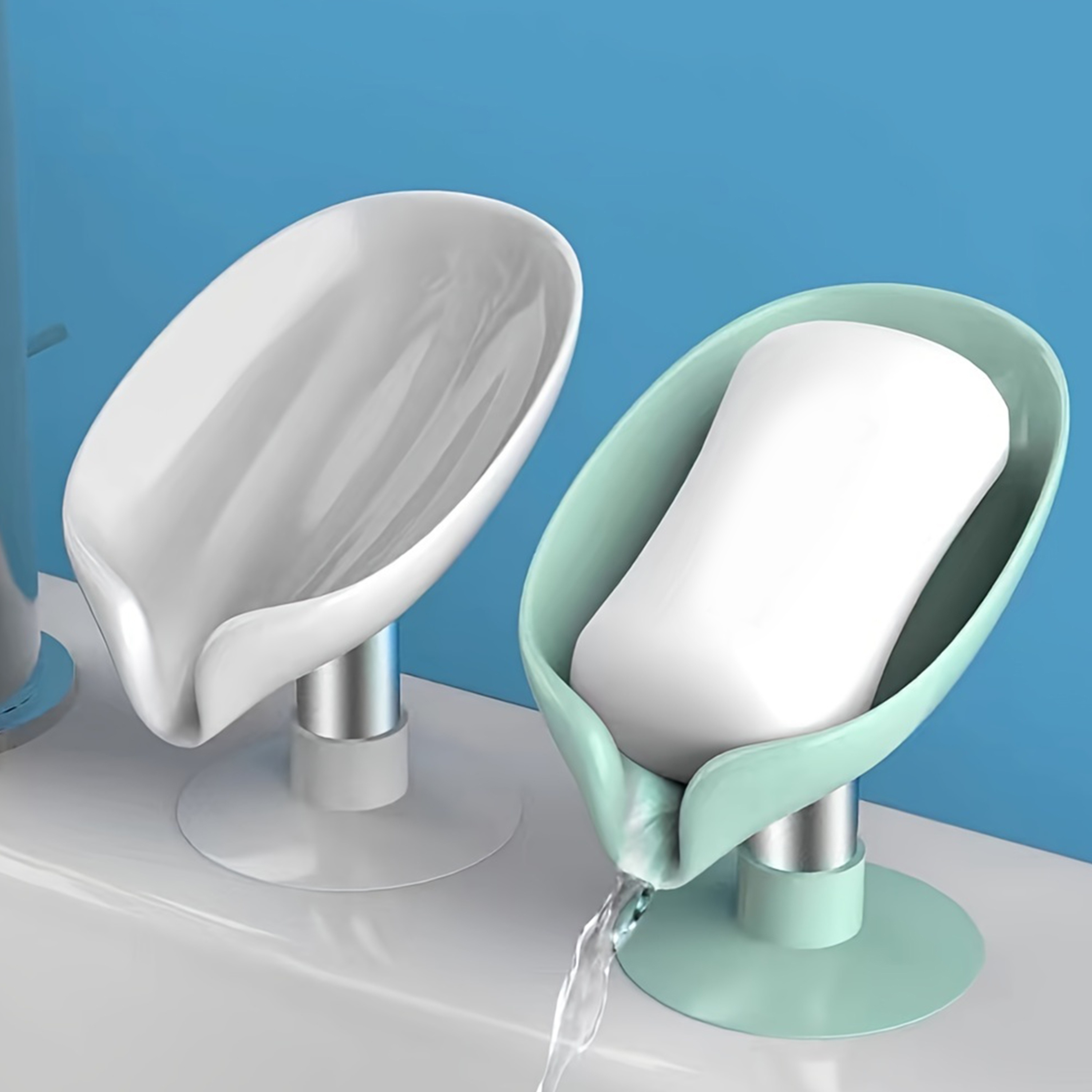 Leaf-Shaped Soap Dish with Drainage, Strong Suction, No Electricity Needed, Enhances Bathroom Decor, Keeps Soap Dry - Green/Gray