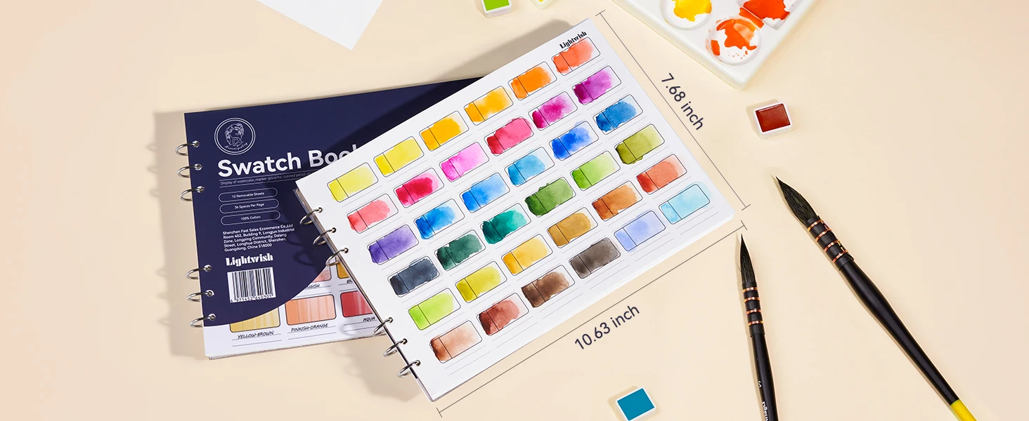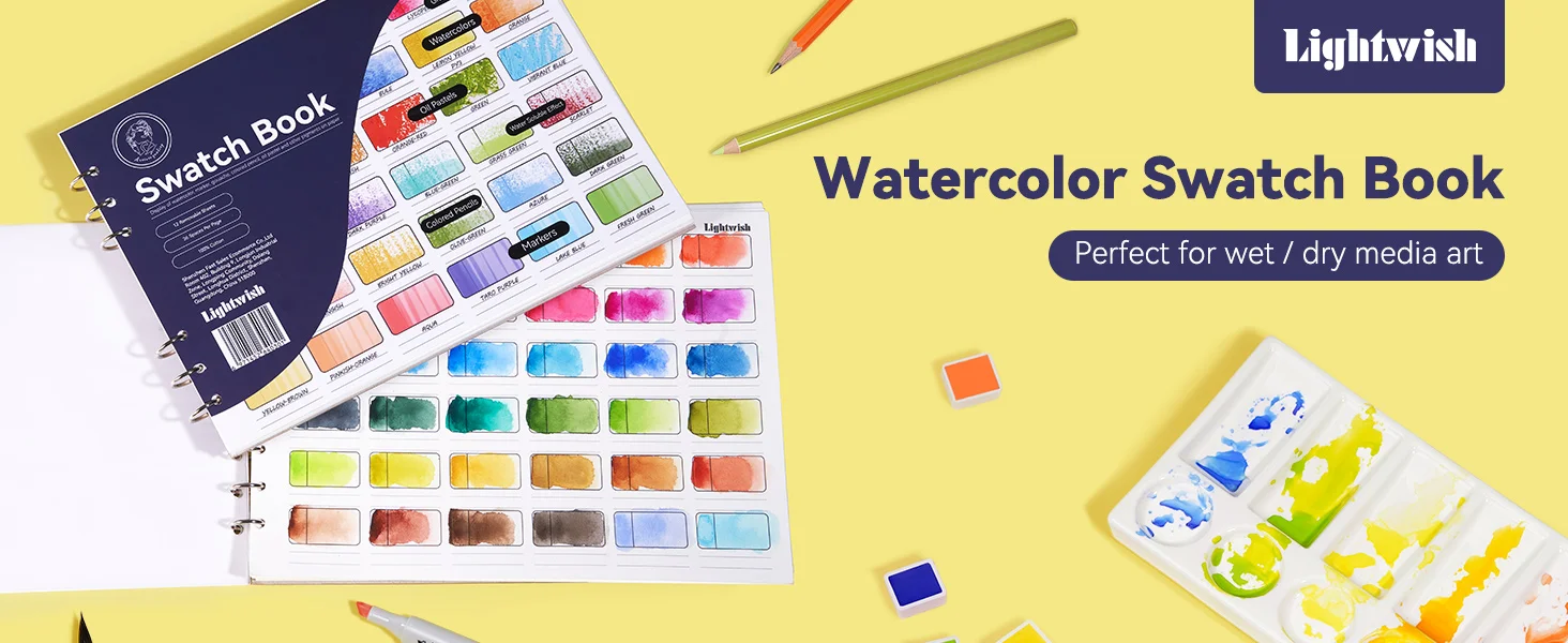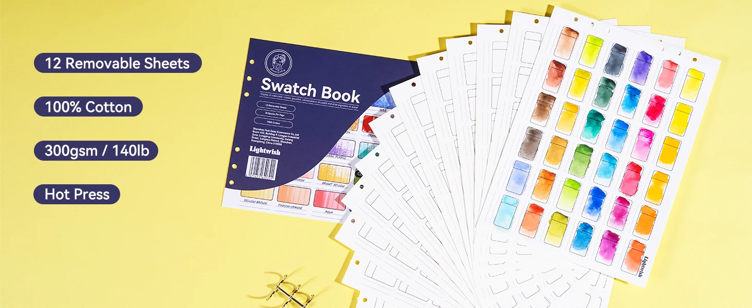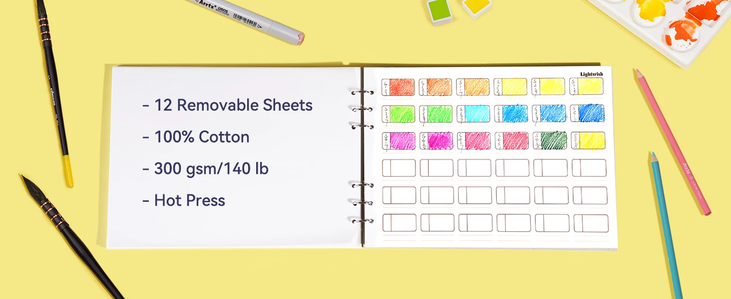 LIGHTWISH – livre d'échantillons d'aquarelle, 12 feuilles détachables 100% coton, 36 espaces, 300 g/m2/140 lb pour aquarelle, Gouache, pastels à l'huile