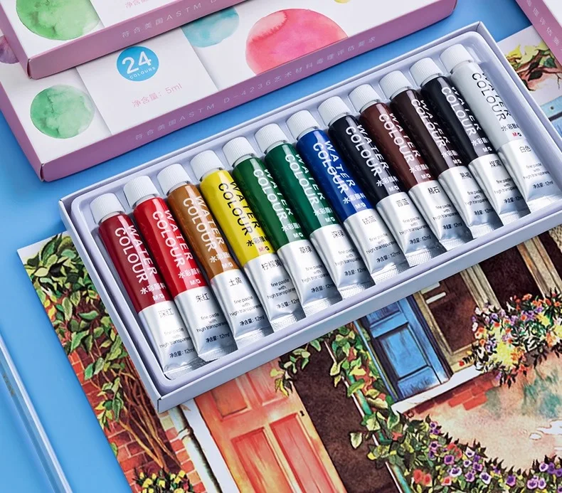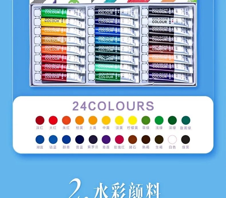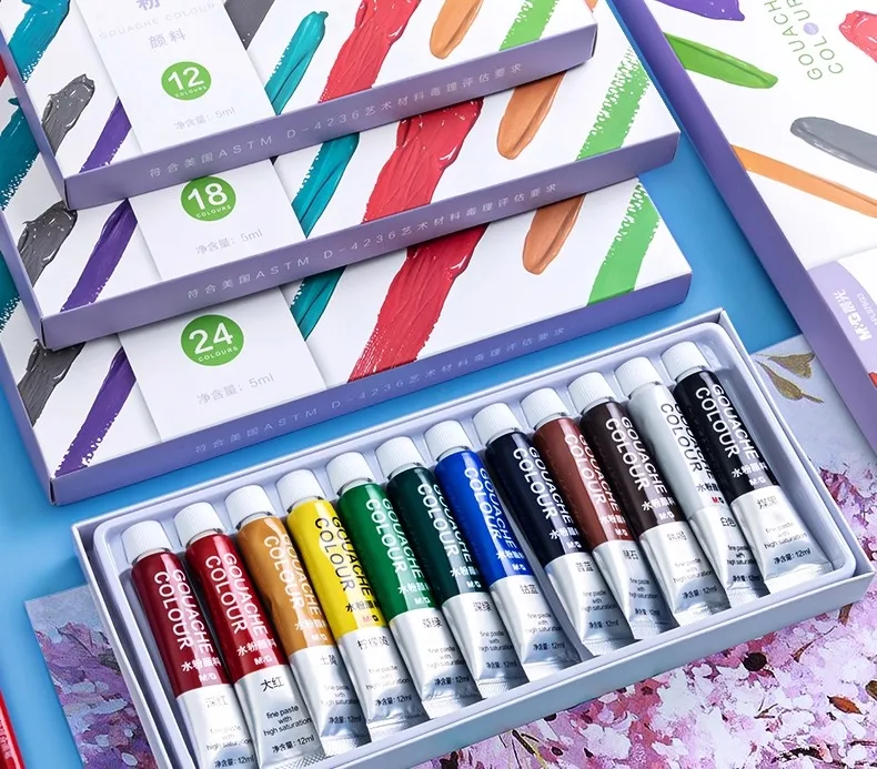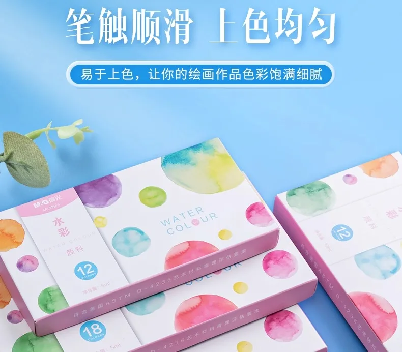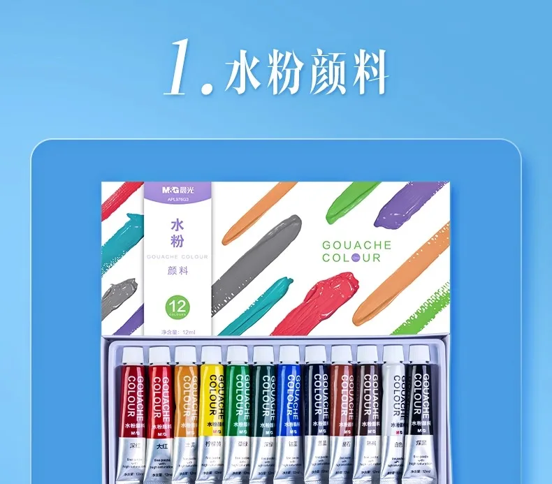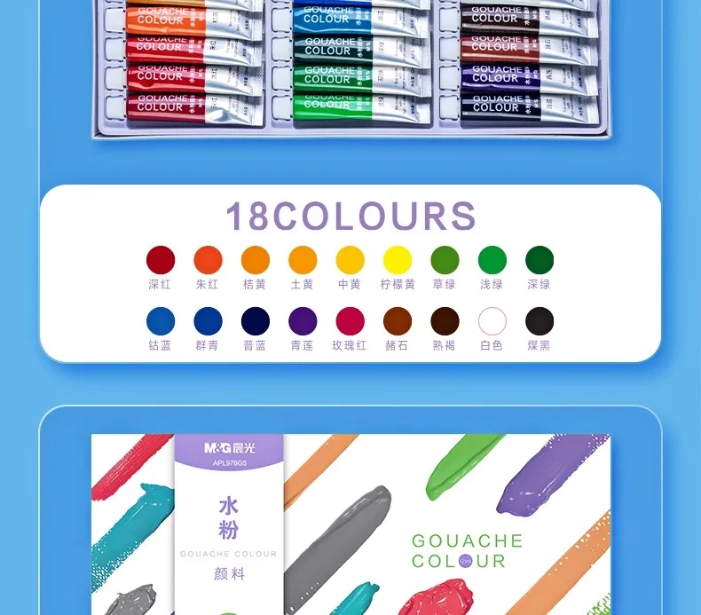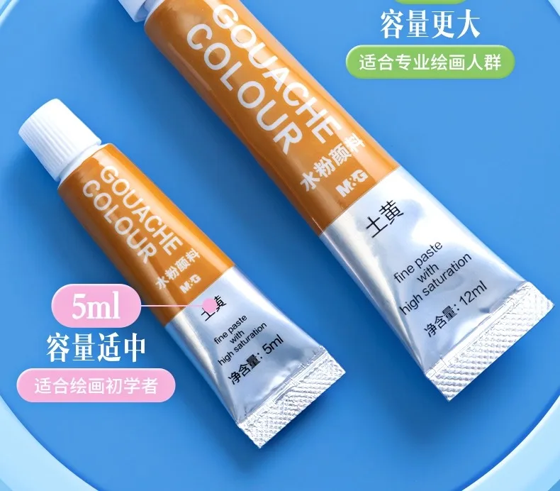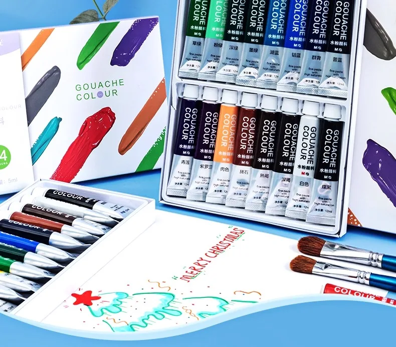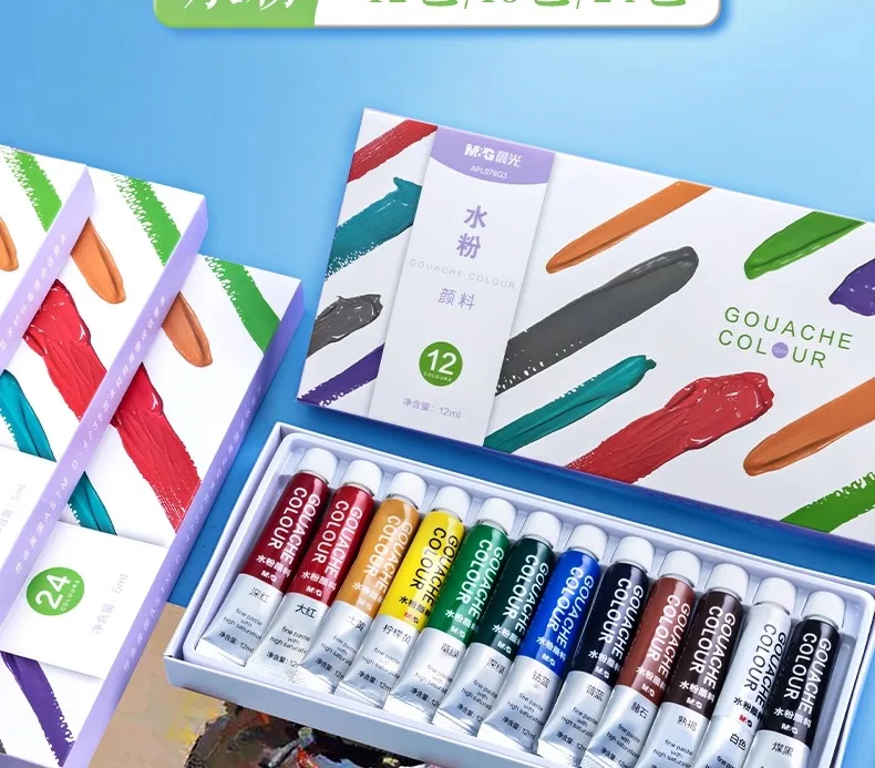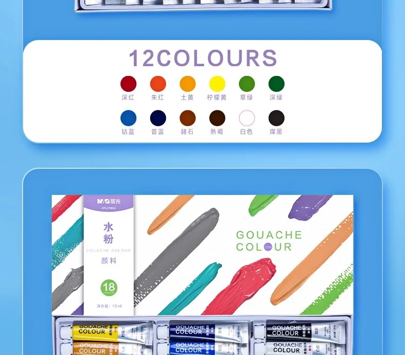 M & G – ensemble de peinture Gouache pour étudiants, 12/18/24 couleurs, Tube Art, outils de peinture spéciaux lavables