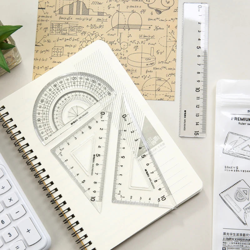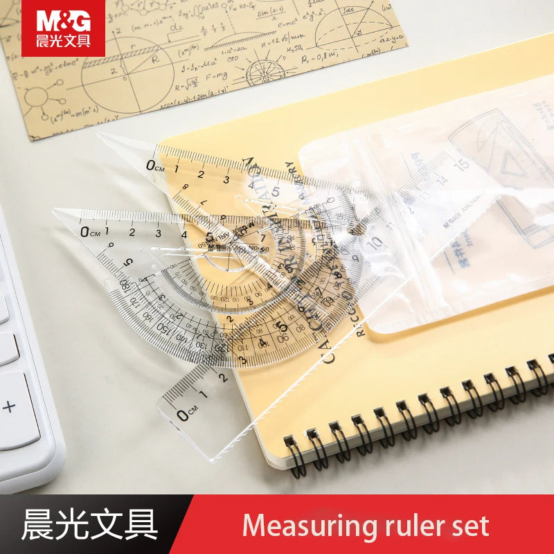 M & G 4 pièces/ensemble règle ensemble papeterie de mesure ensemble rapporteur règle droite règle triangulaire kit scolaire ensemble mathématique