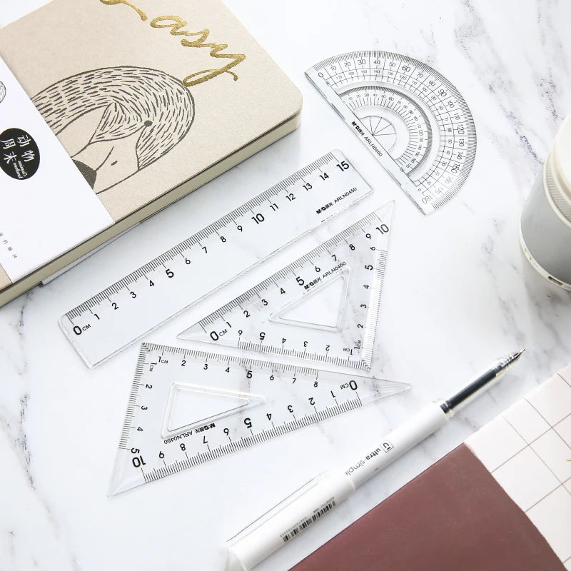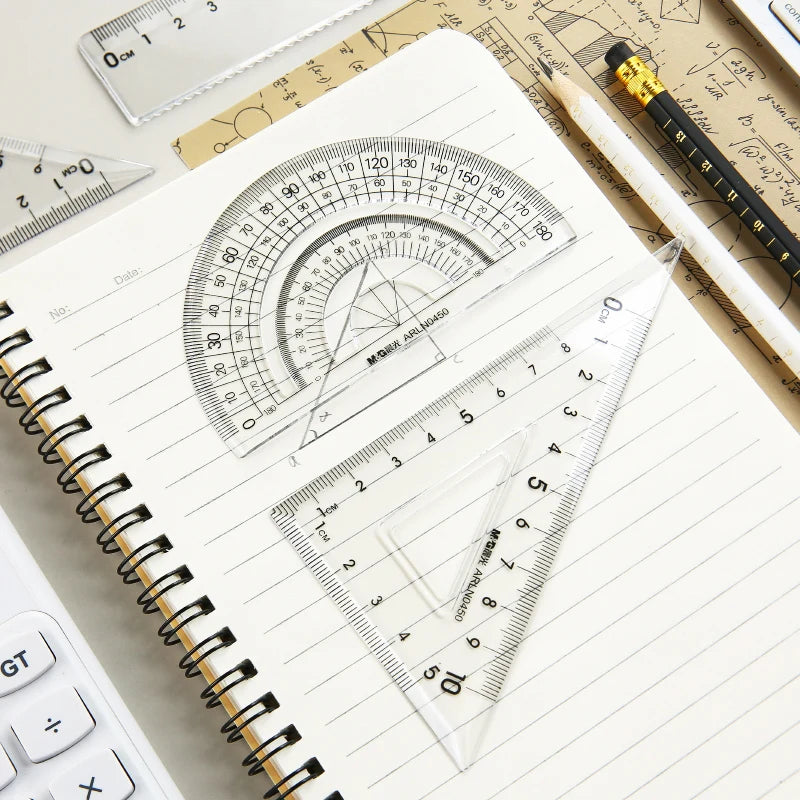 M & G- Ensemble de règles de mesure, rapporteur, règle droite, équerre