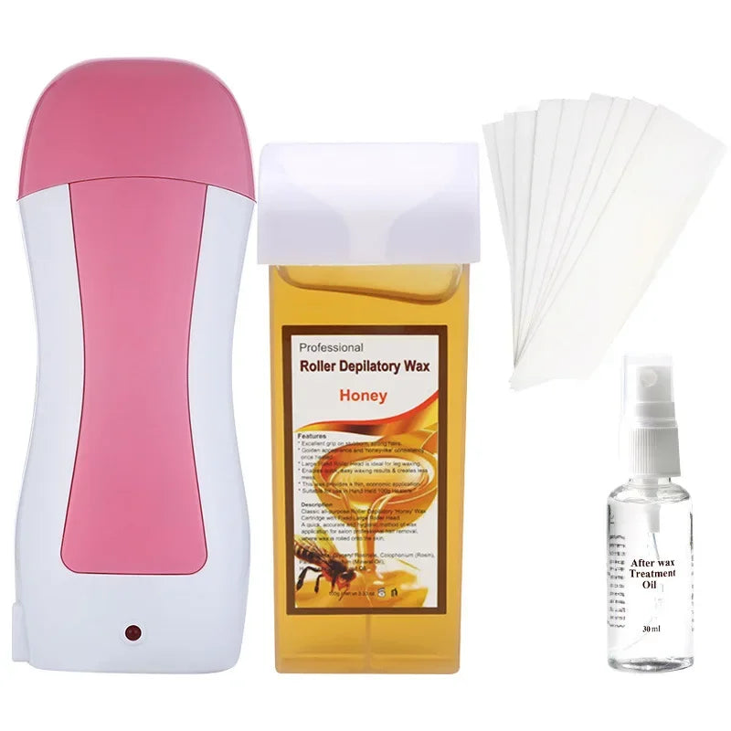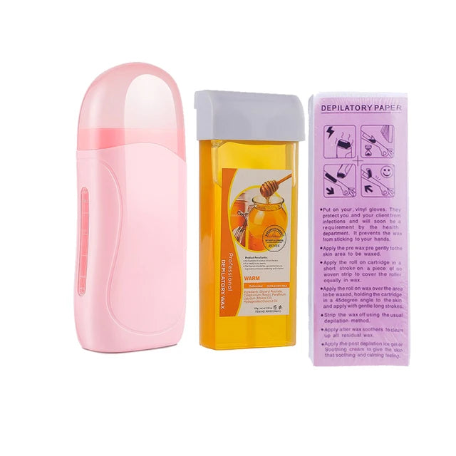Nouvel ensemble rose: Chauffe-cire PinkHot * 1, papier ciré * 1(100 feuilles), cire d'abeille d'épilation 100g * 1