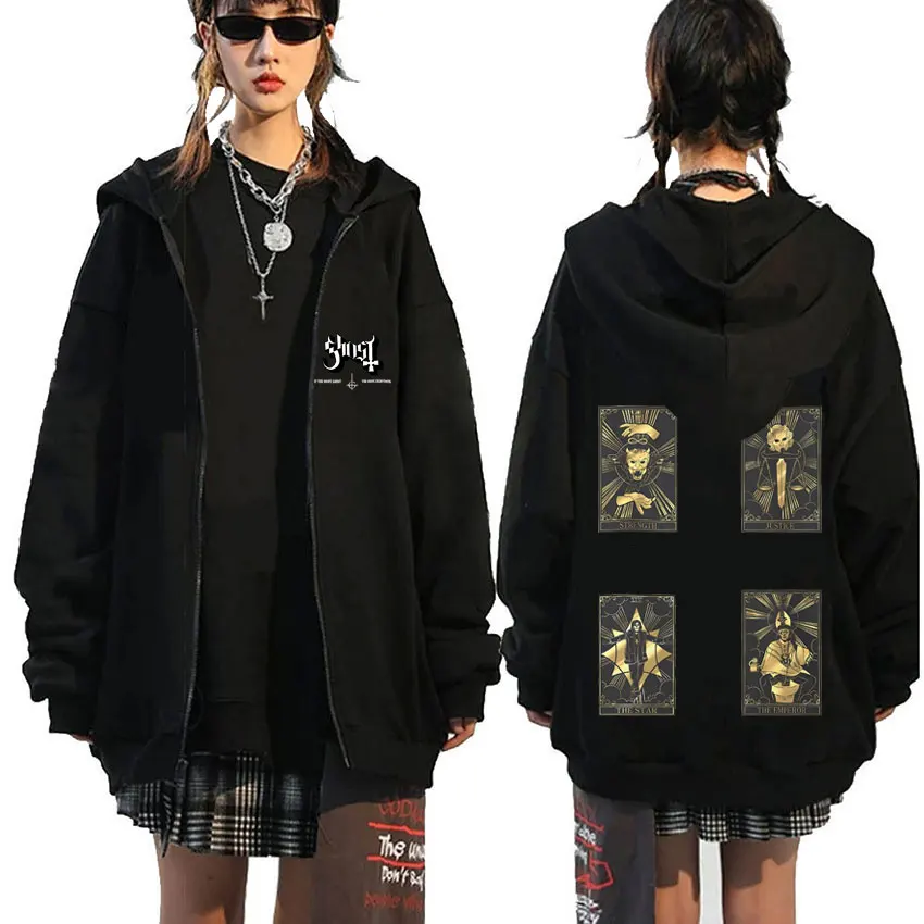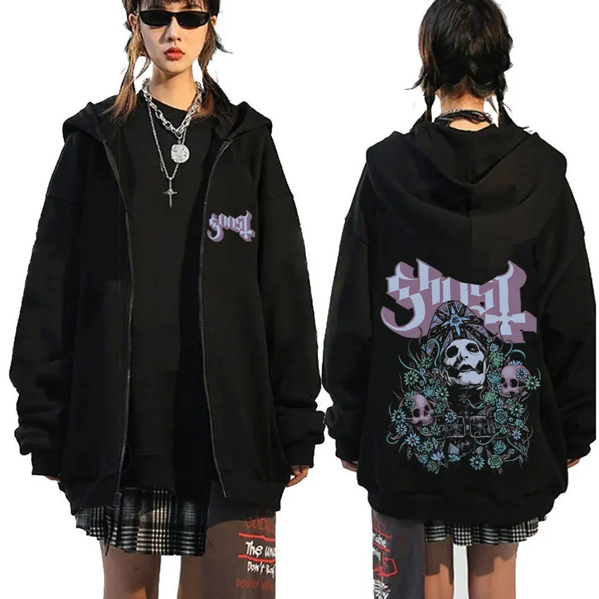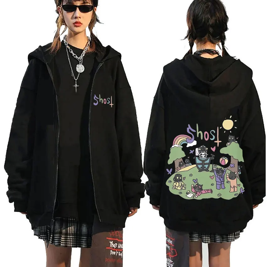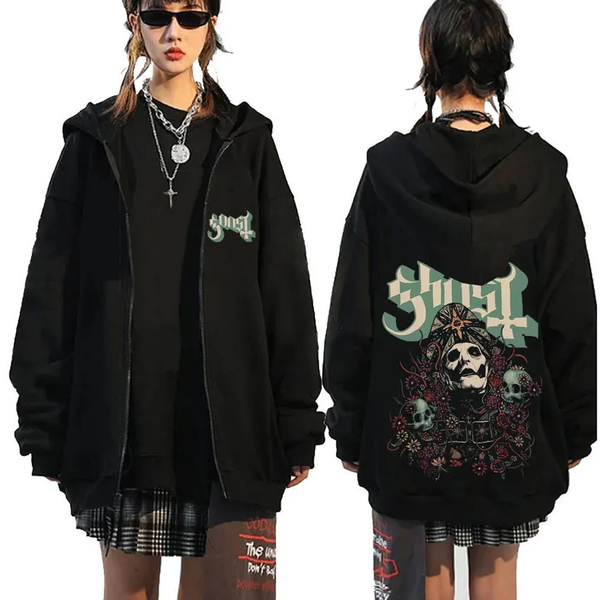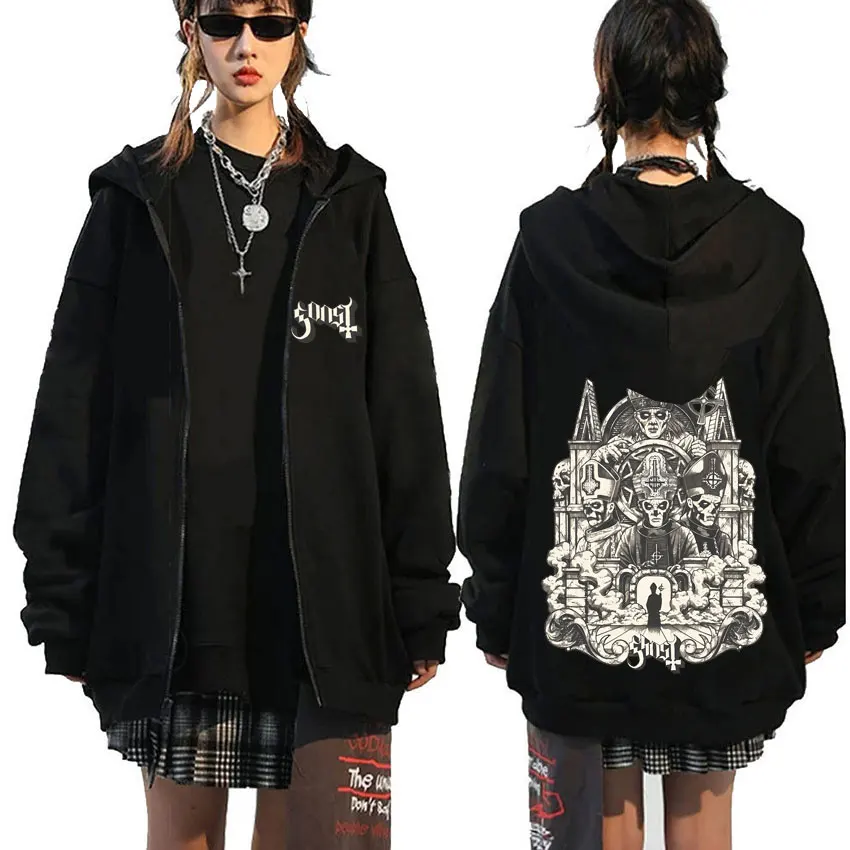 Mesurost Band Zipper Hoodie pour hommes, Hip Hop Respzed Fashion, Cartoon Anime Graphic Print, Zip Up Hoodies, Rock Gothic, PVD