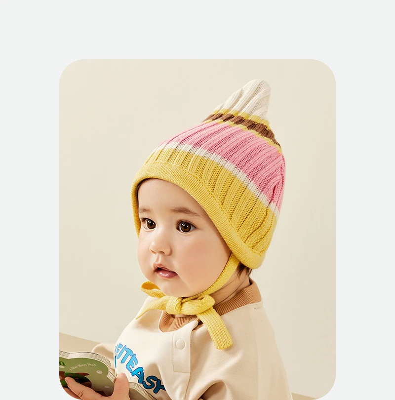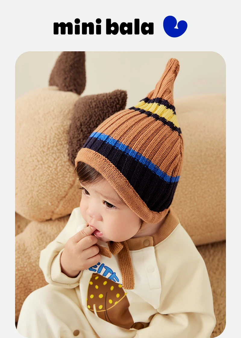 Mini Bala – chapeau de Protection des oreilles pour enfants, bloc de couleurs, pour garçons et filles, casquette tricotée rétro tendance, nouvelle collection automne et hiver 2025