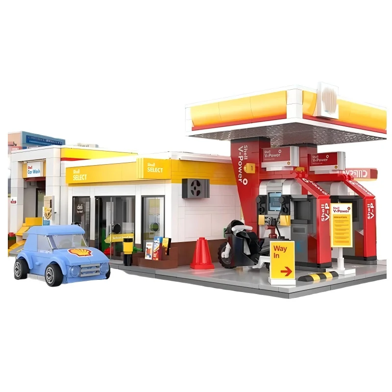 MOC City – Station de vente au détail, série de lavage de voiture, bloc de construction, modèle de dépanneur, briques, jouets pour enfants, cadeaux de bricolage
