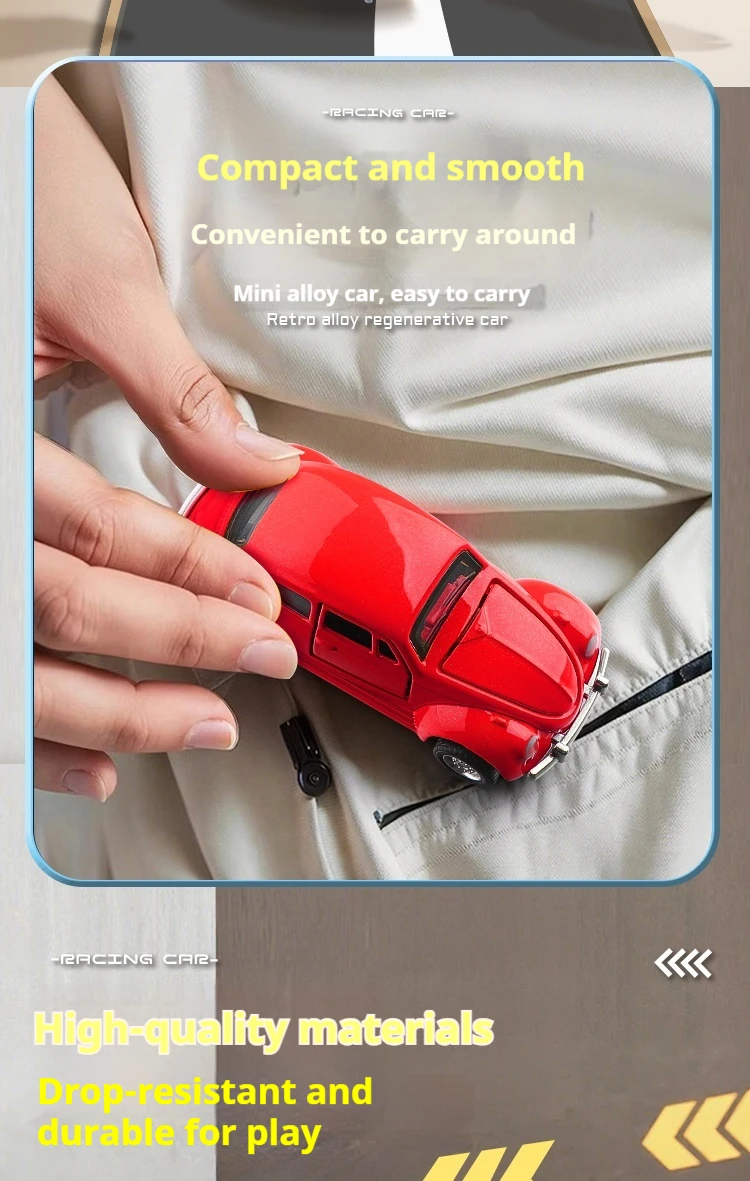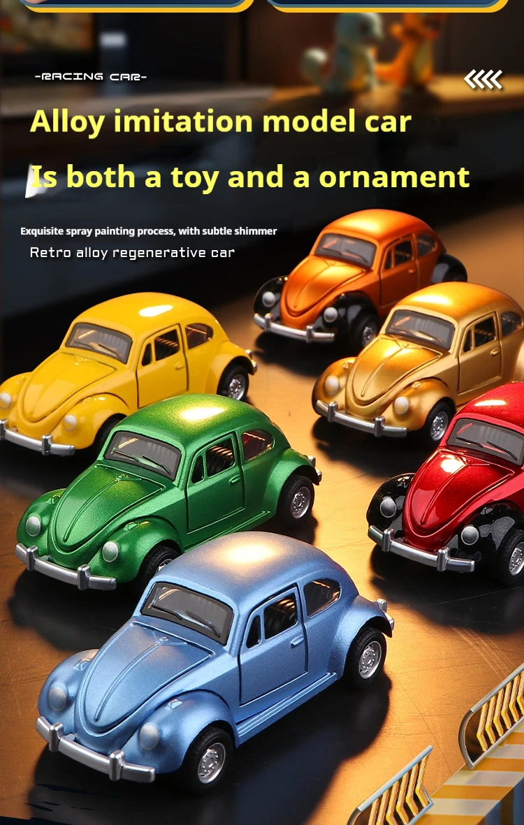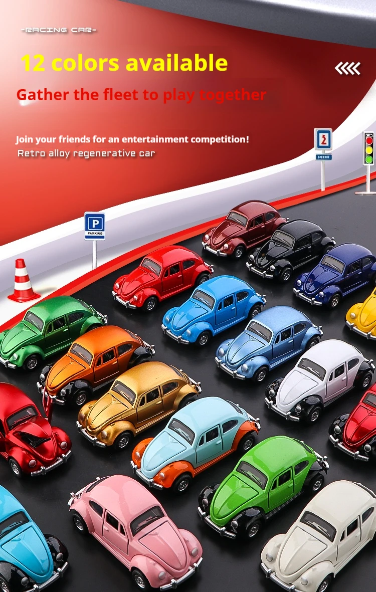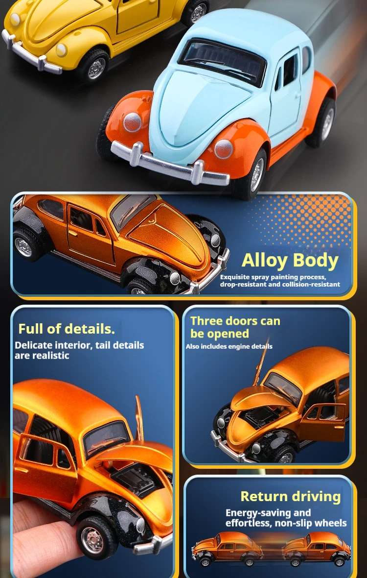 Modèle de voiture classique Beetle mini voiture en alliage à traction, trois portes peuvent être ouvertes à l'échelle 1:60, cadeaux pour garçons adultes et enfants