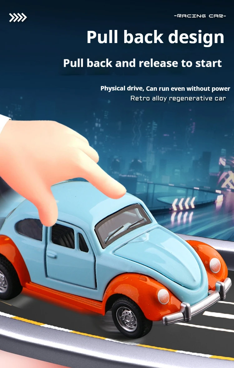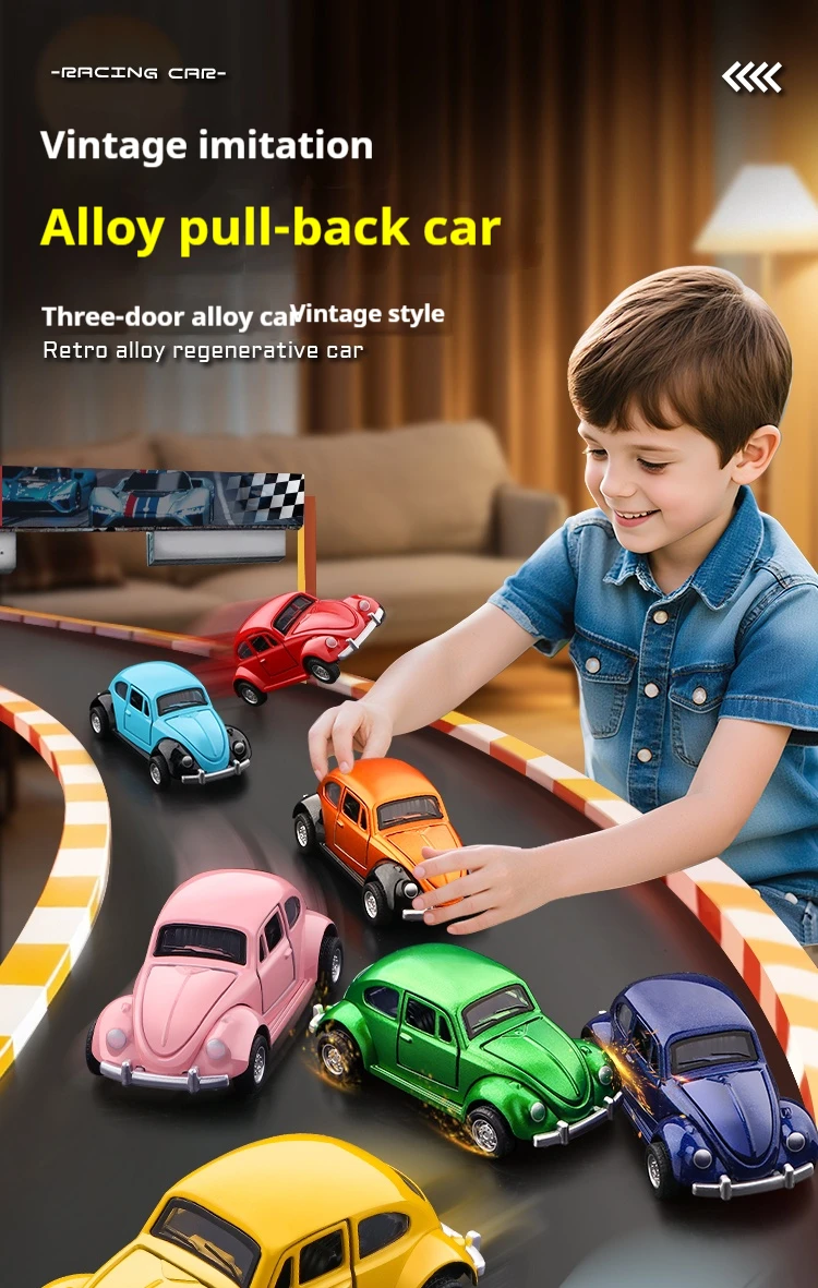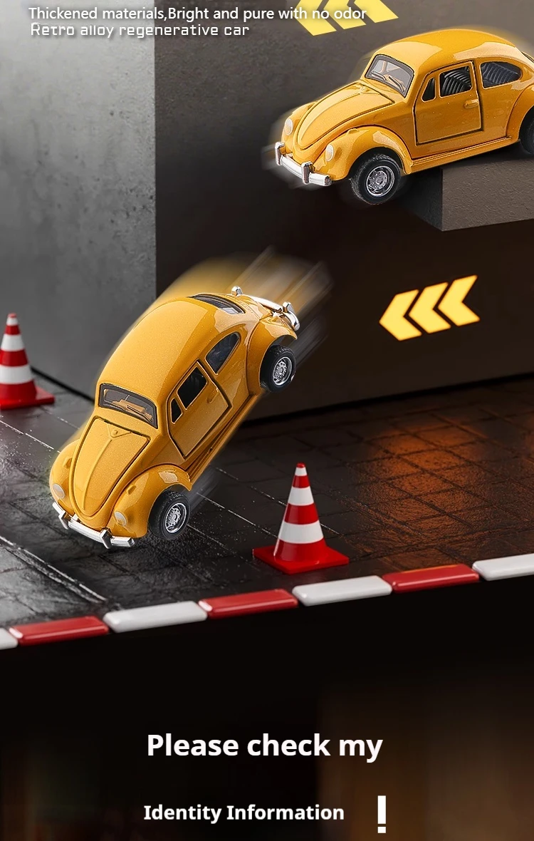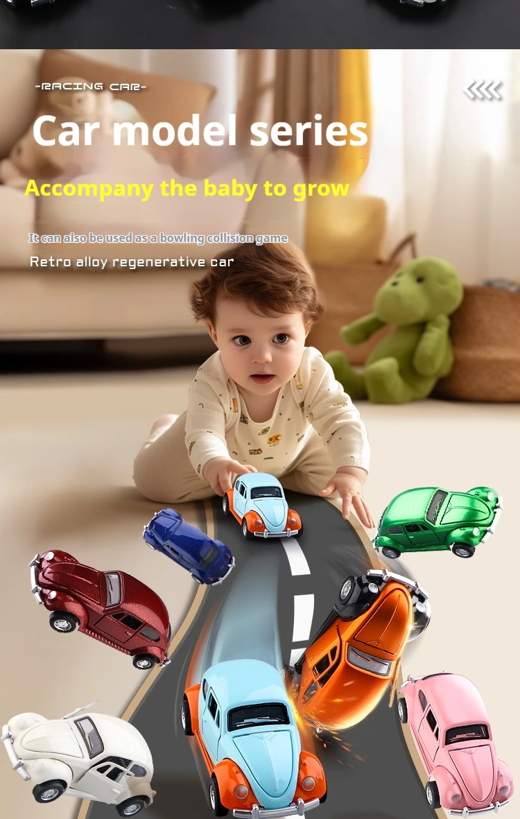 Modèle de voiture classique Beetle mini voiture en alliage à traction, trois portes peuvent être ouvertes à l'échelle 1:60, cadeaux pour garçons adultes et enfants