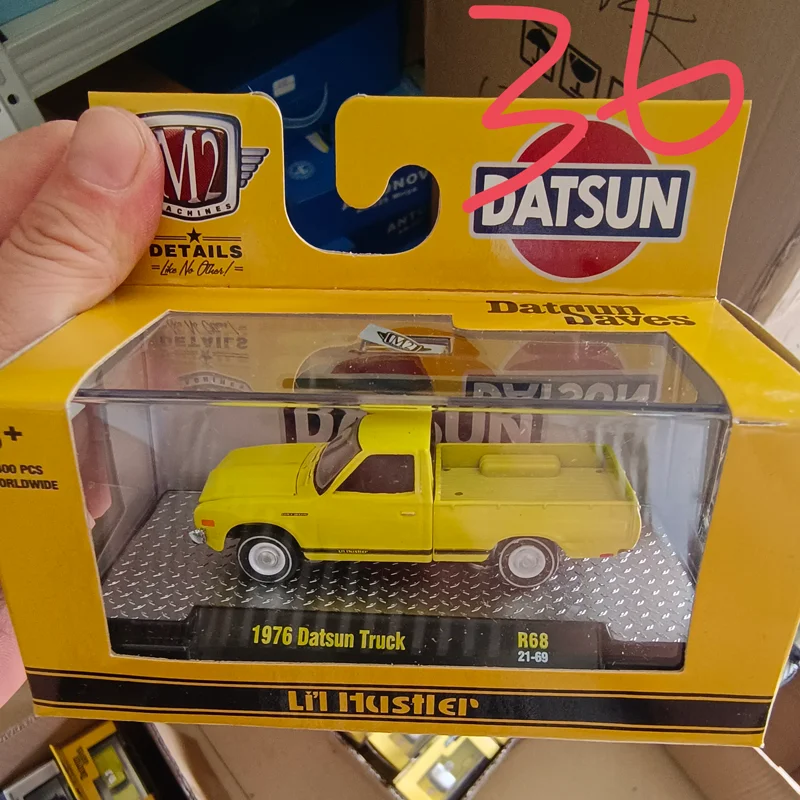 Nom du modèle: En stock échelle moulé sous pression 1:64 1976 Datsun camion Simulation statique modèle de voiture en alliage métal véhicule décoration Collection de cadeaux