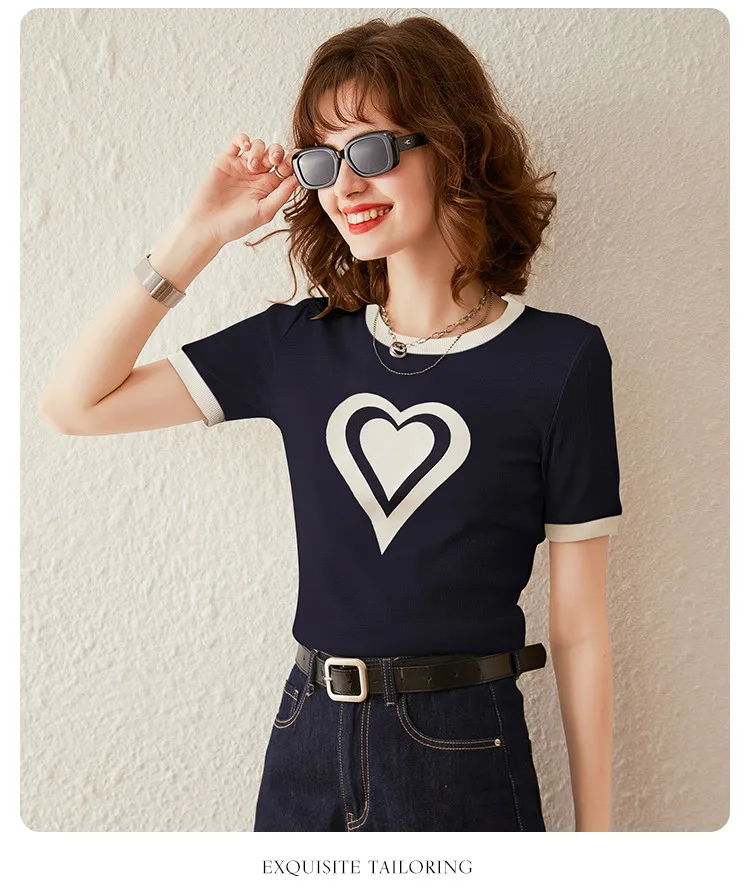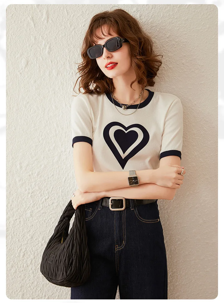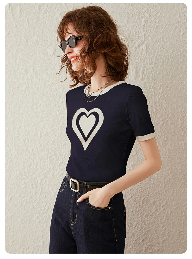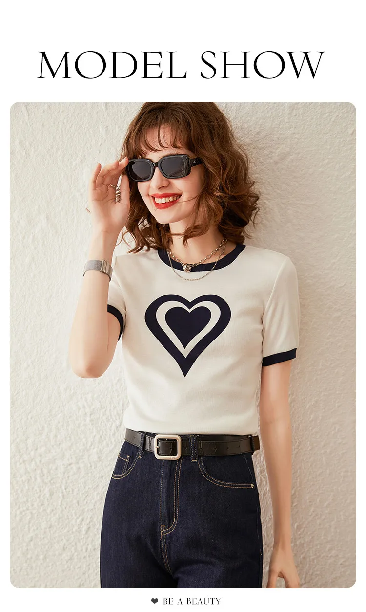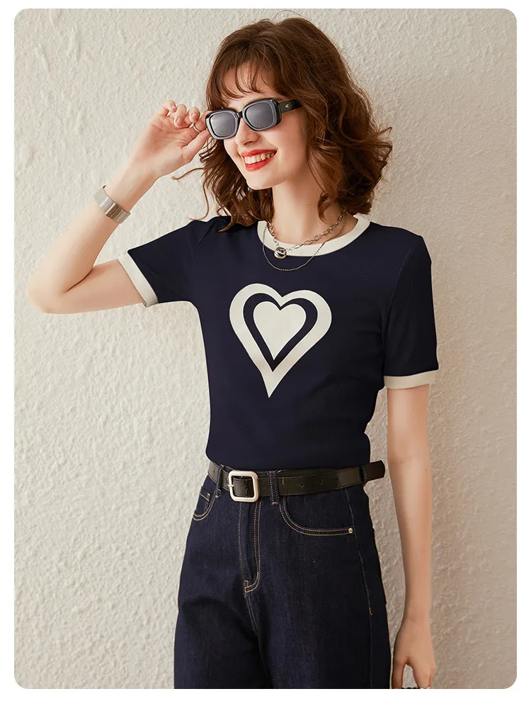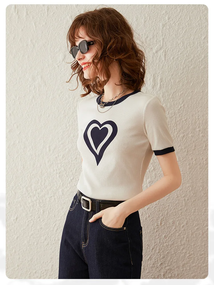 Modiis Yao-T-shirt manches courtes col rond femme, estival et décontracté, avec cœur imprimé, 2024
