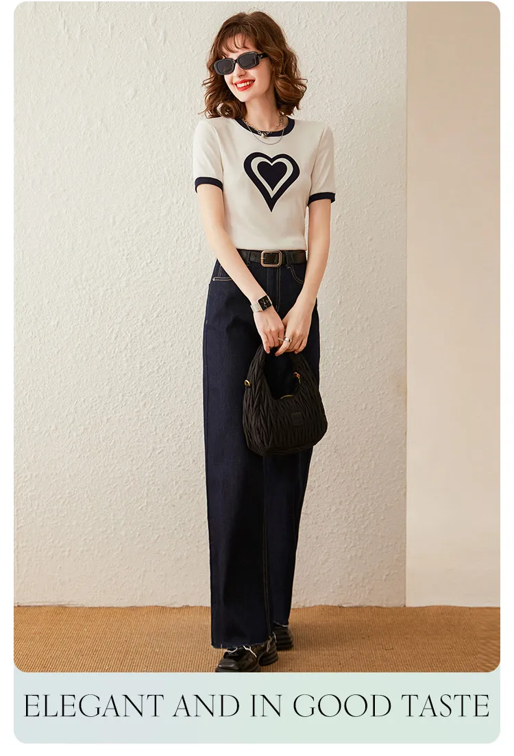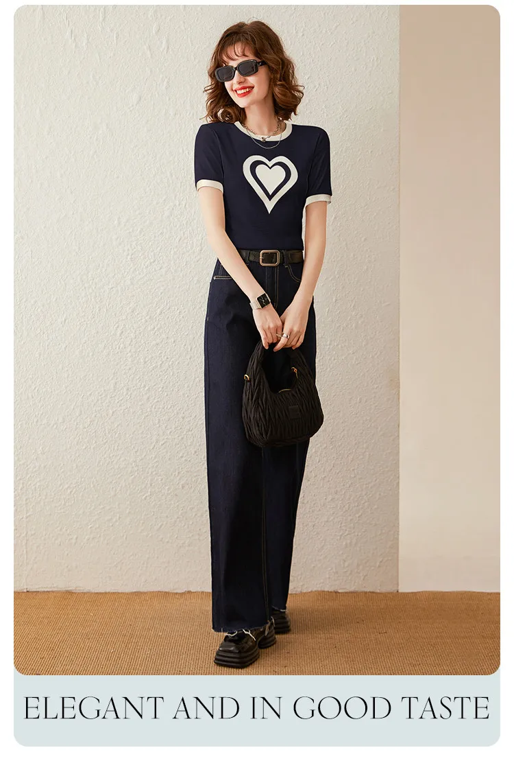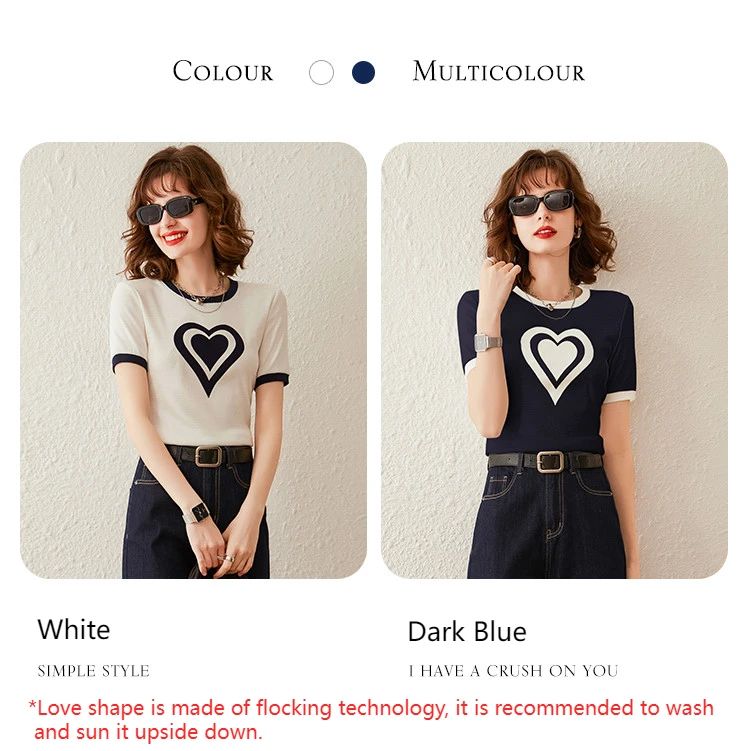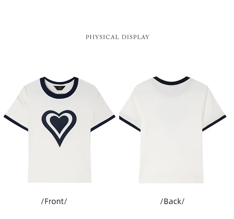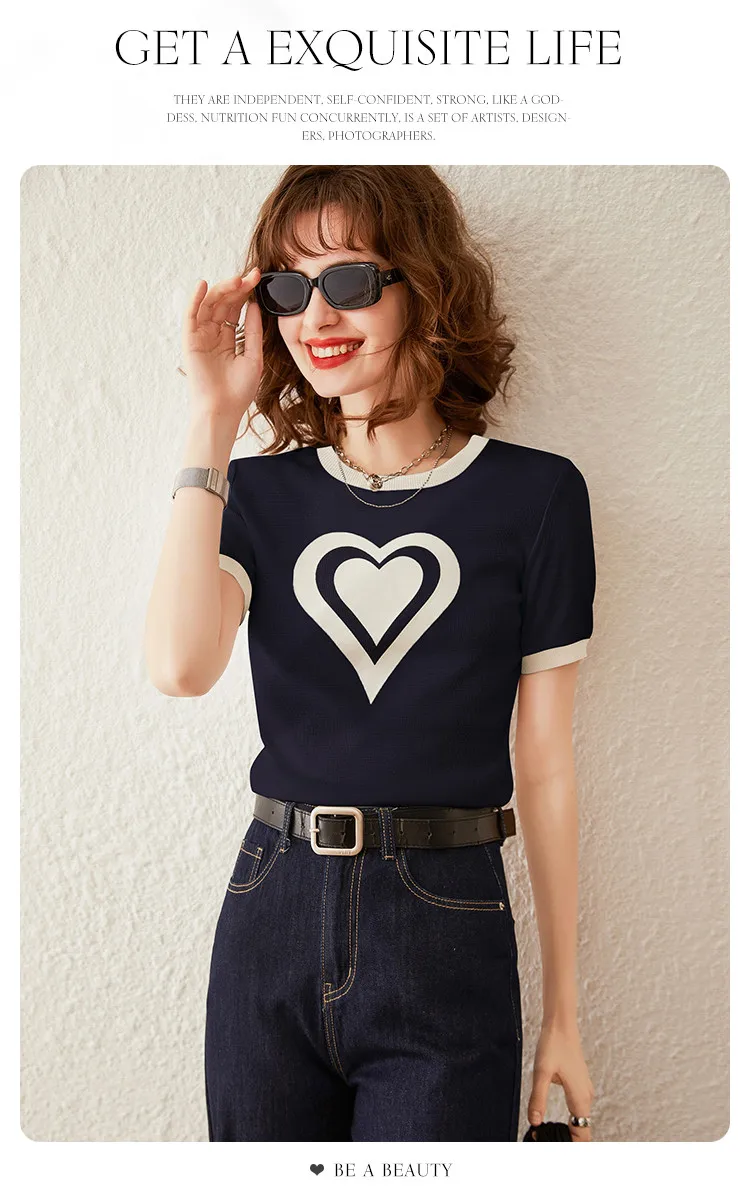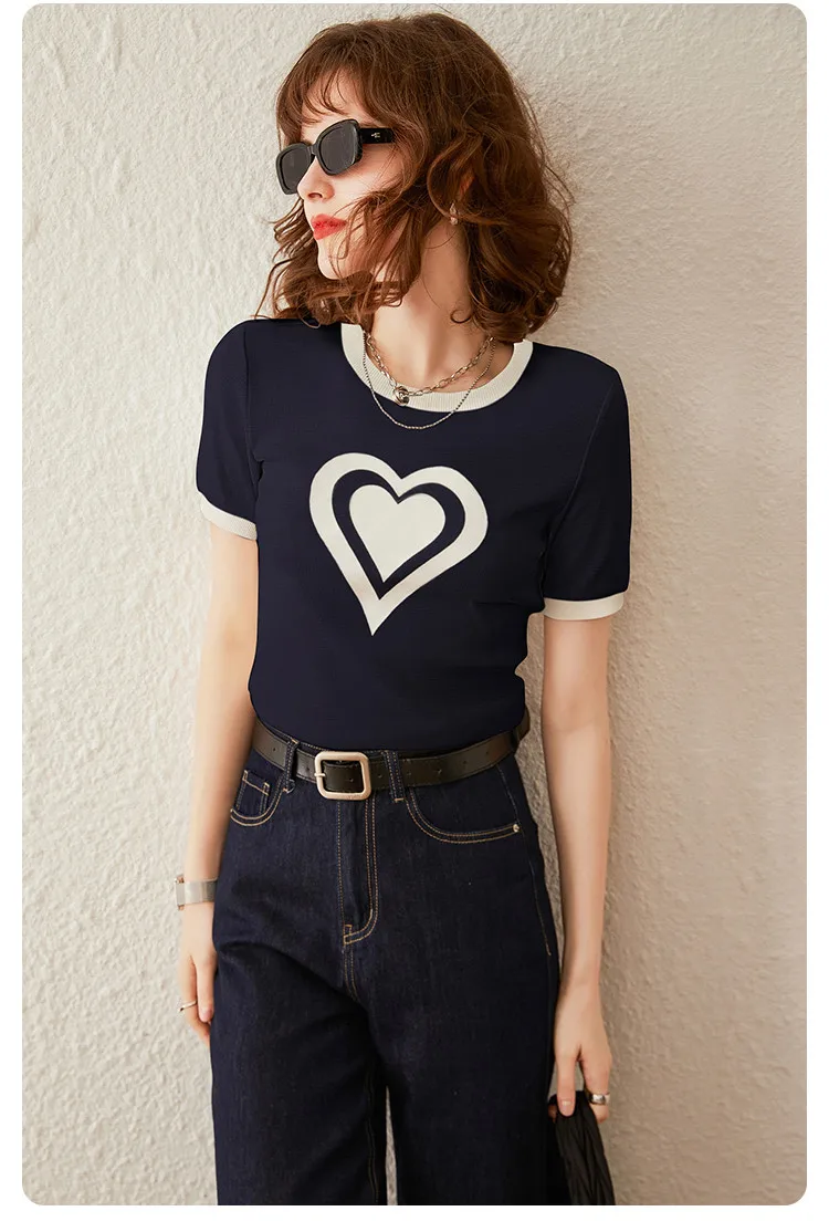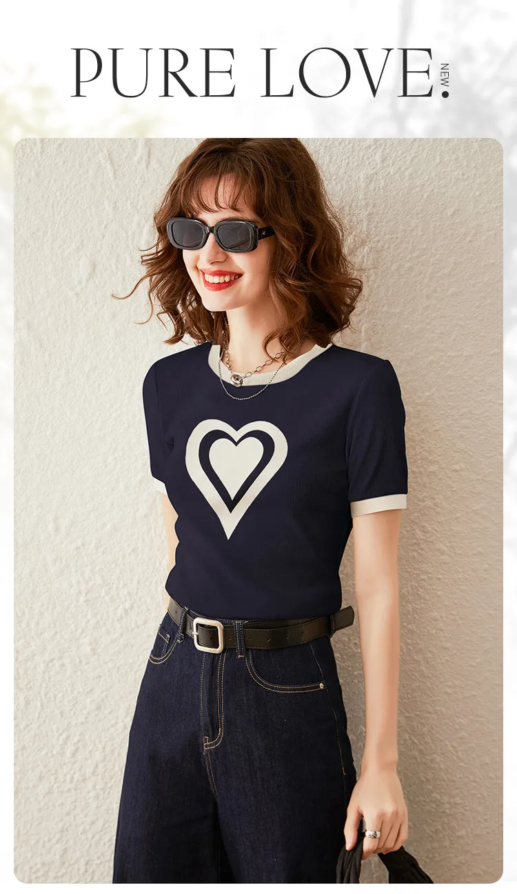 Modiis Yao-T-shirt manches courtes col rond femme, estival et décontracté, avec cœur imprimé, 2024