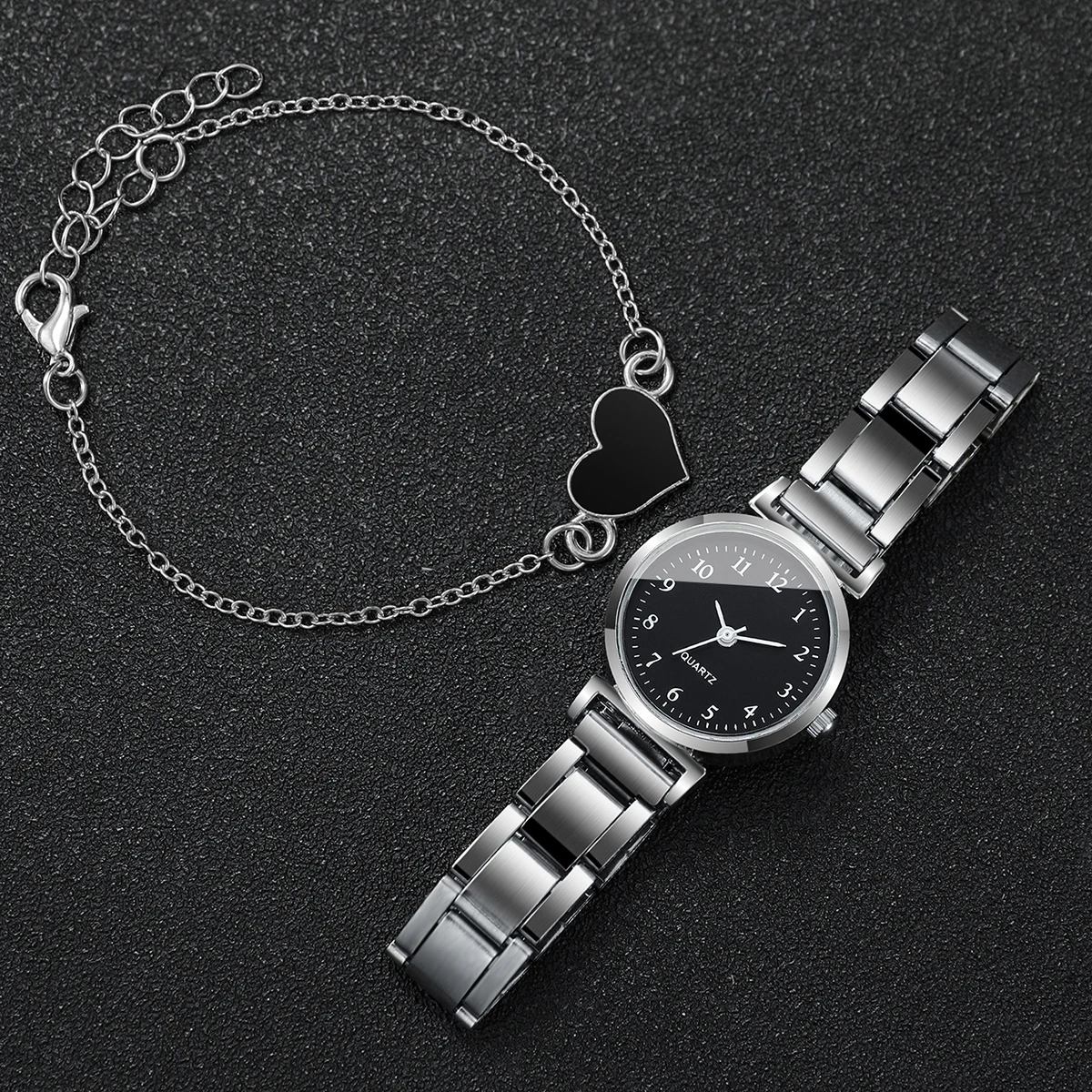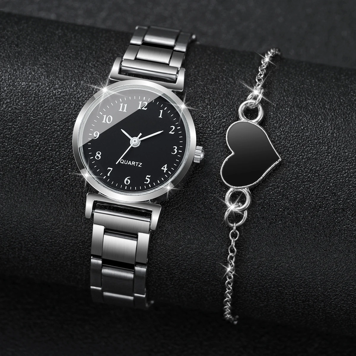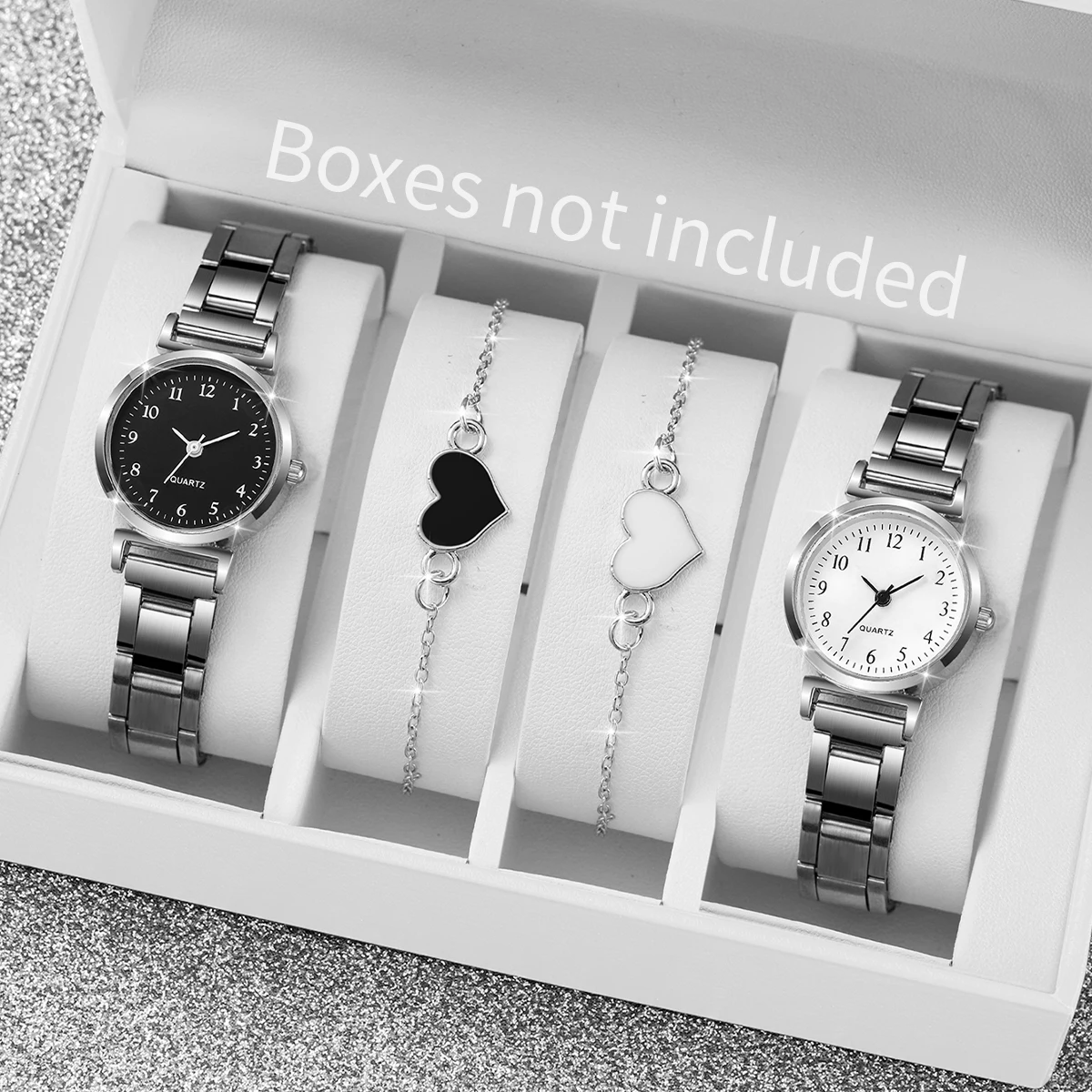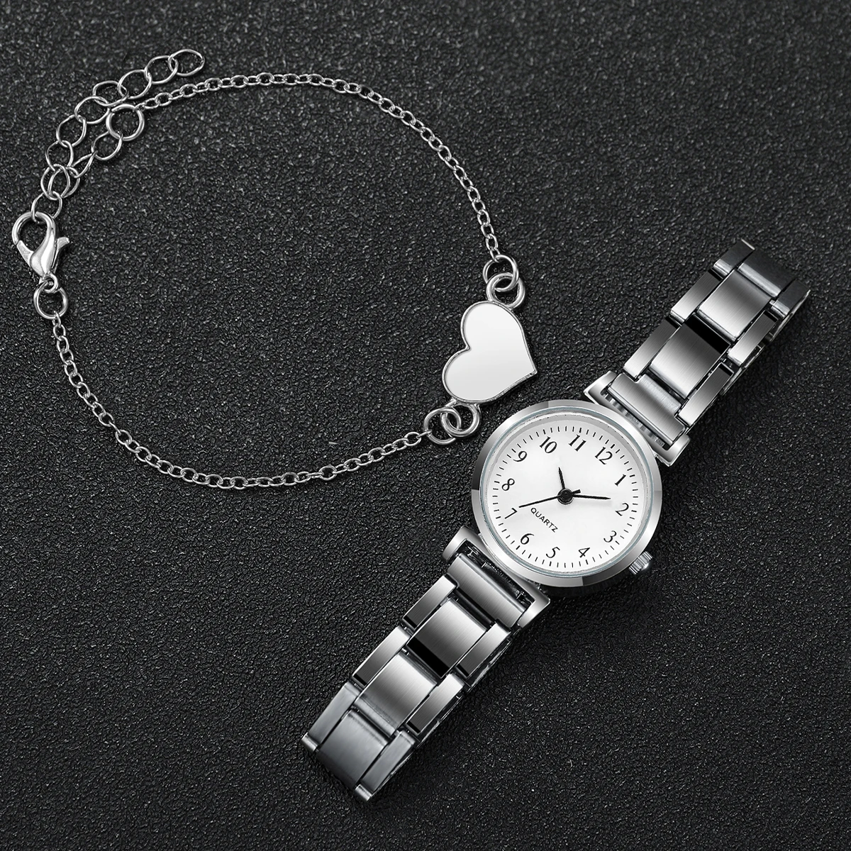 Montre à quartz compacte avec bracelet en forme de cœur pour femme, cadran rond, mode, ensemble de 4 pièces
