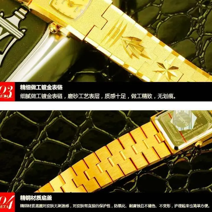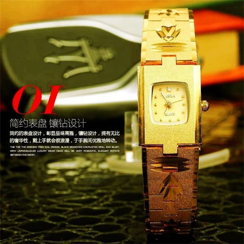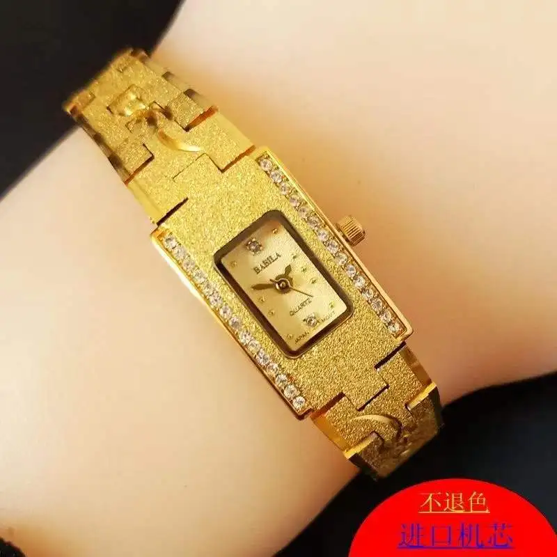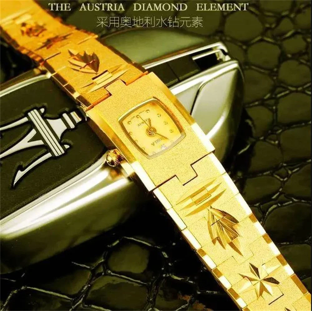 montre pour femme montre en or 24K incrusté de diamants petits modèles sculptés rétro luxueux