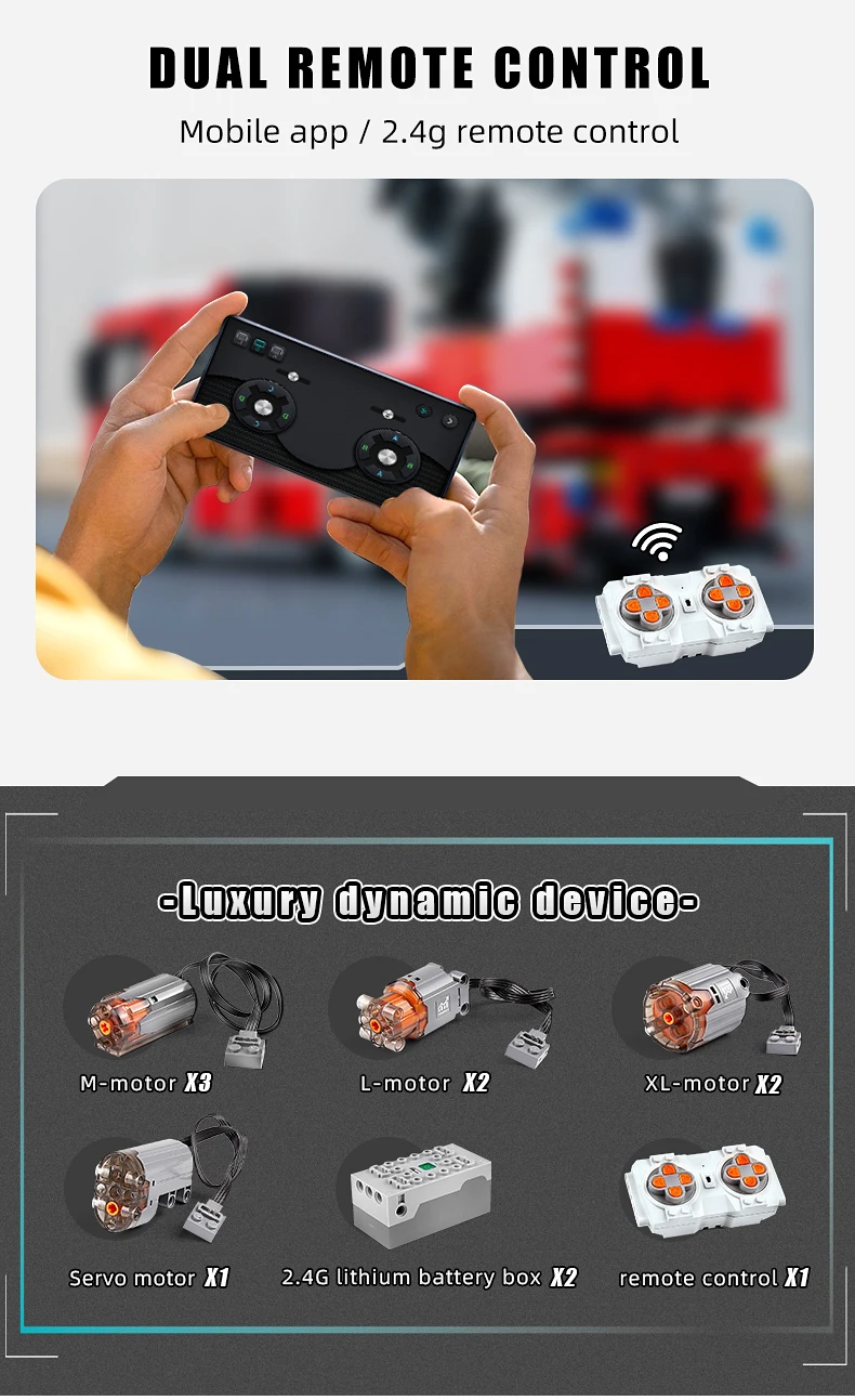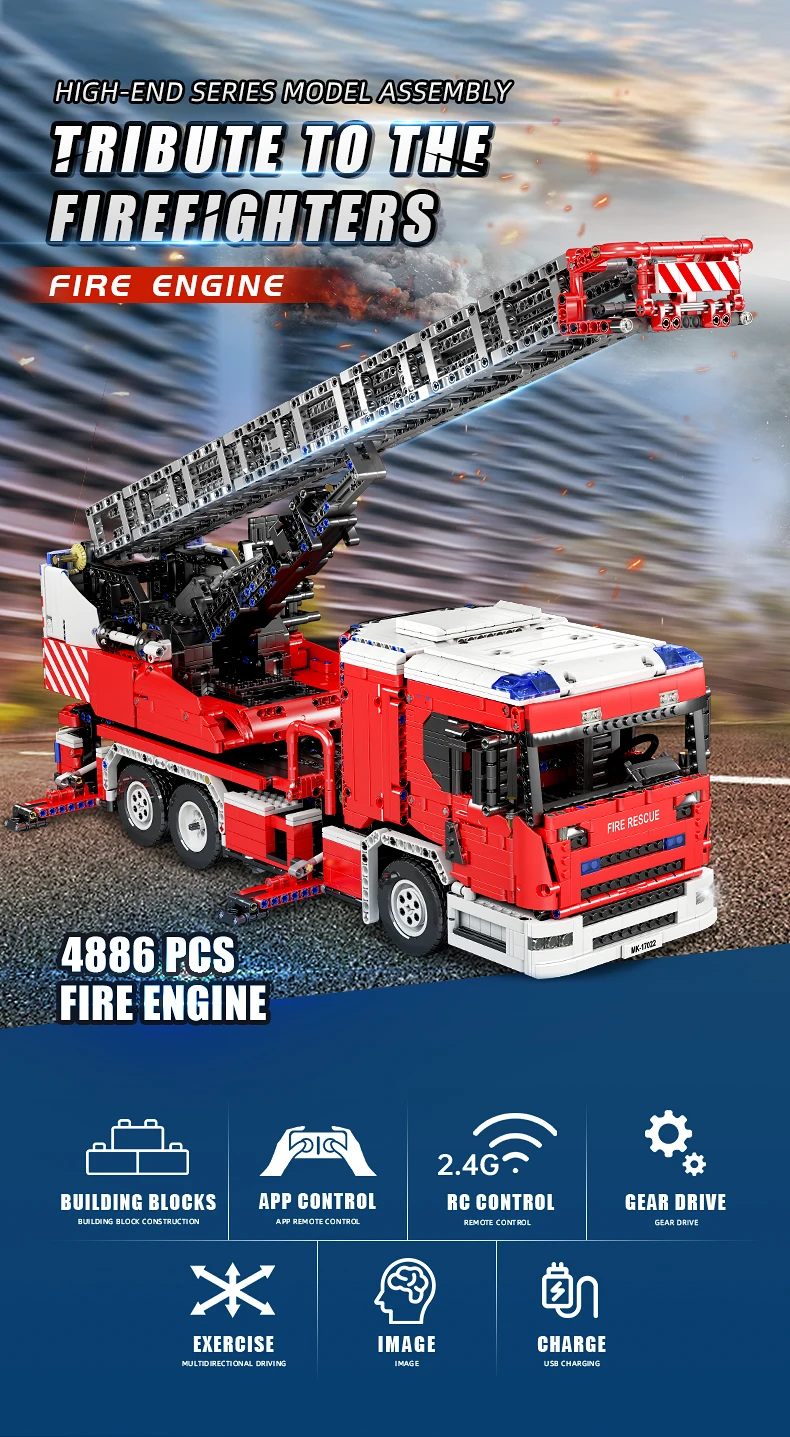 MOULD KING Voiture de Pompiers Motorisé Scania L, Véhicule Technique, Echelle à Plateau Tournant, Ensemble de Blocs de Construction, MOC-60361, Référence 17022