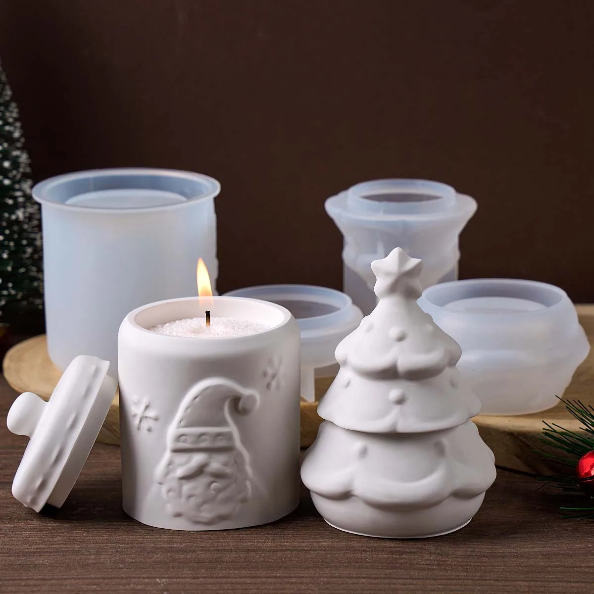 Moule de pot de bougie d'arbre de noël, père noël, bricolage, ornement de noël fait à la main, plâtre, résine, artisanat, moulage, décoration de fête à domicile