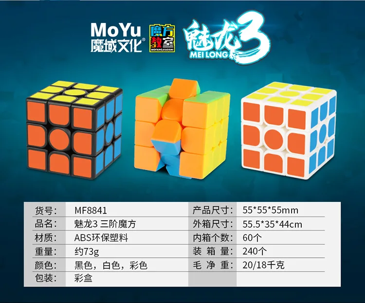 Moyu-Cubes magiques sans autocollant pour enfants, salle d'irritation, Meilong 3, 255,3x3, puzzle à 3 couches, cube de vitesse, jouets de puzzle professionnels