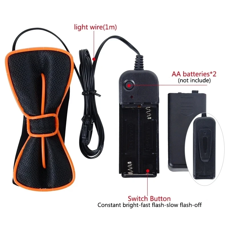 Noeud lumineux LED Shoous pour homme, fil EL lumineux, accessoire de vêtements de scène, décoration de fête au néon, Halloween et Noël, bar et club