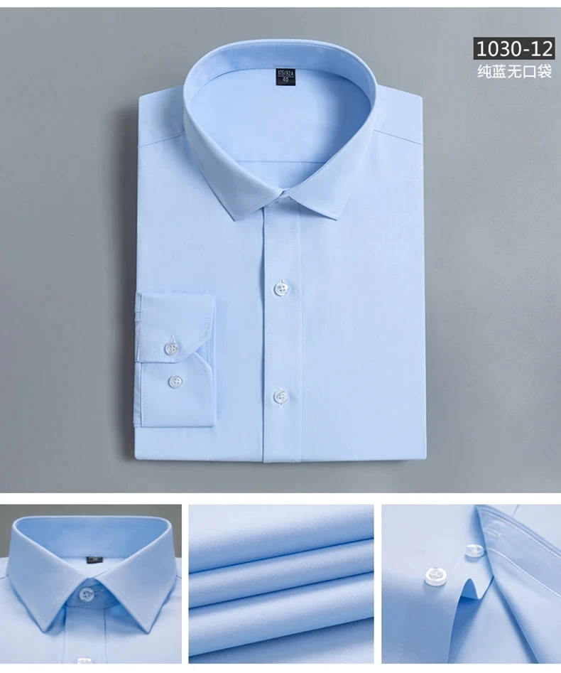 Nouveau coton hommes classique à manches longues robe chemise poche régulière coupe formelle affaires travail bureau décontracté bouton blanc chemises sociales