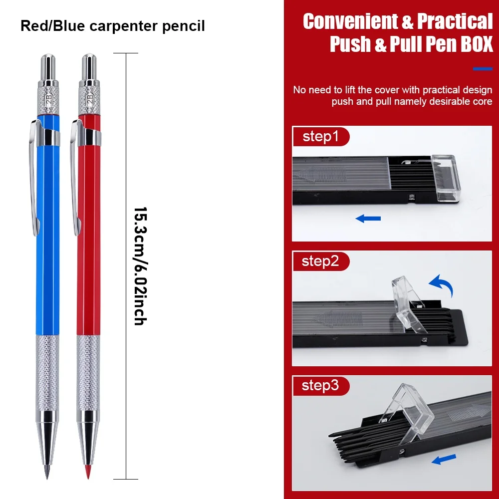 Nouveau 1 crayon mécanique en métal multicolore avec taille-crayon intégré, 1 boîte de stylo automatique noir/couleur de 2,0 mm, pour bureau école croquis écriture fournitures de papeterie (1 crayon ou 1 boîte de mine)