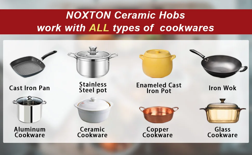 【Compatible avec tous les types d'ustensiles de cuisine】 La plaque de cuisson en céramique convertit la chaleur directement, tout type d'ustensiles de cuisine peut être utilisé dessus.