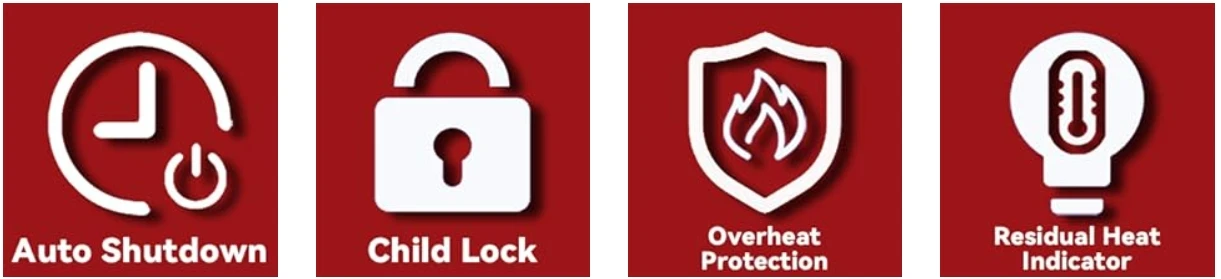 【Mesures de sécurité multiples】 Verrouillage de sécurité pour enfants, indicateur de chaleur résiduelle, protection contre la surchauffe, arrêt automatique pour éviter les accidents.
