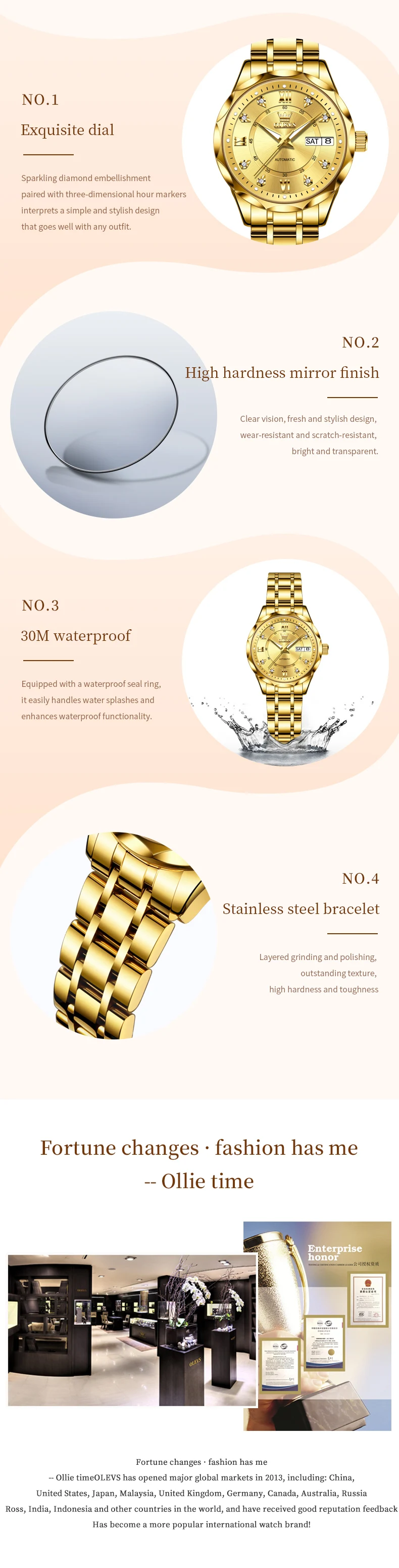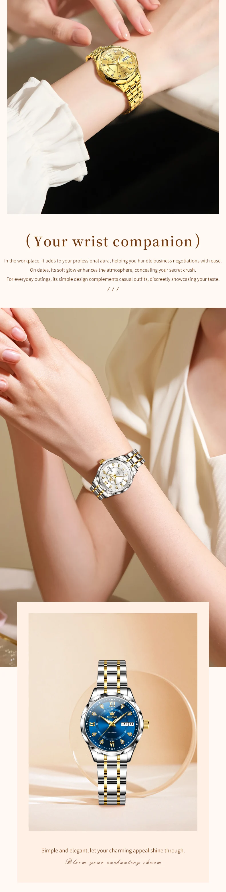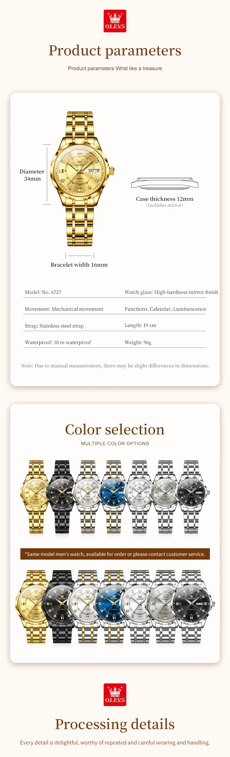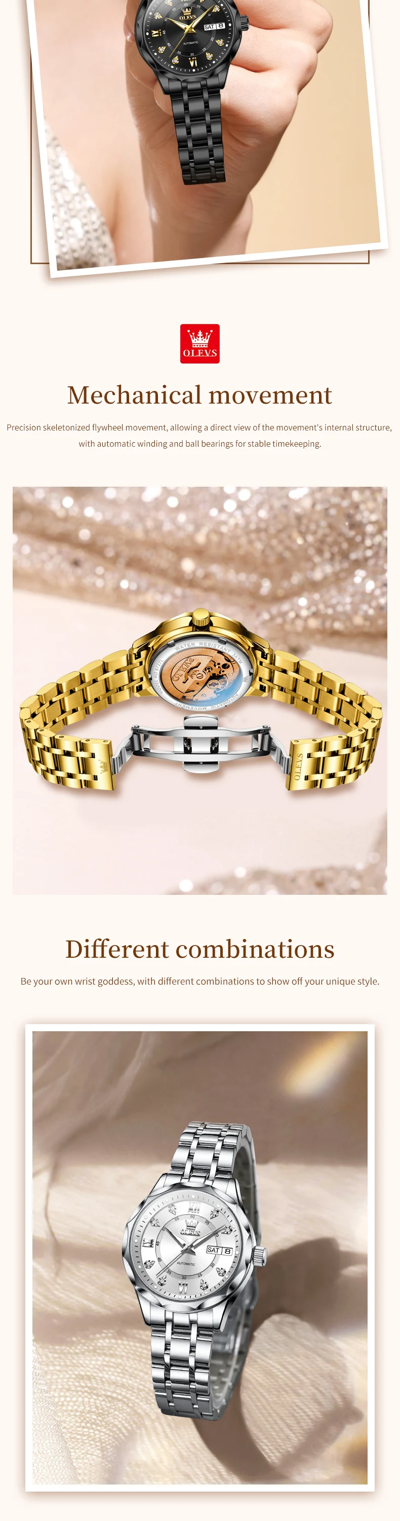 OLEVS 6727 montres mécaniques automatiques Simple polyvalent 30m étanche