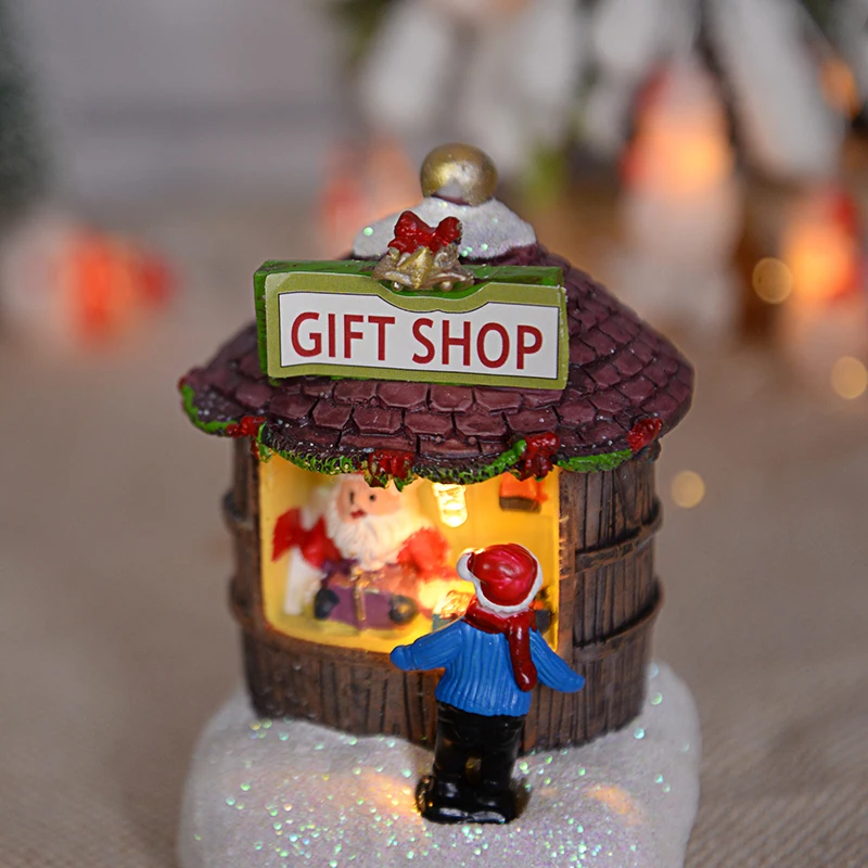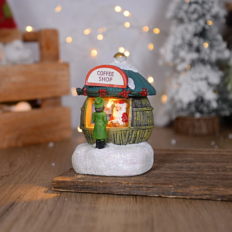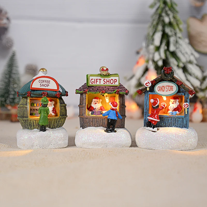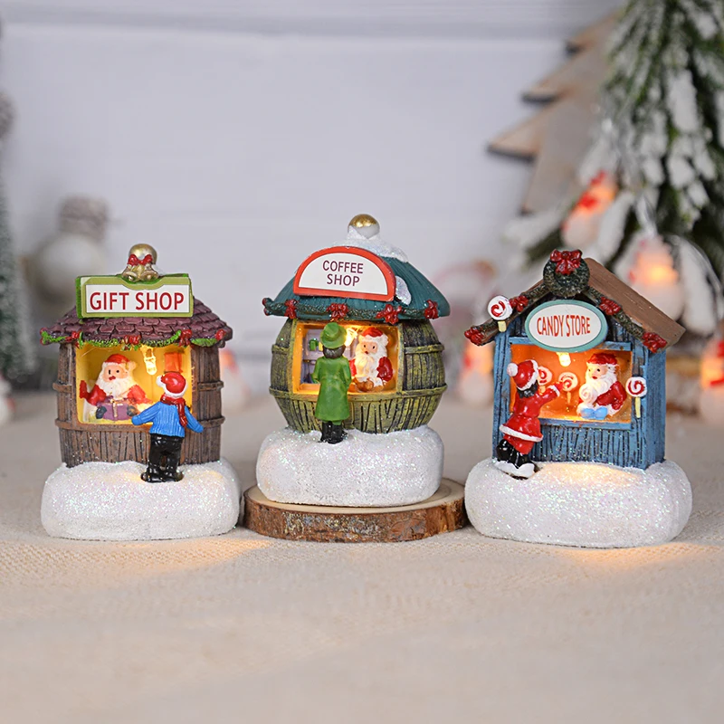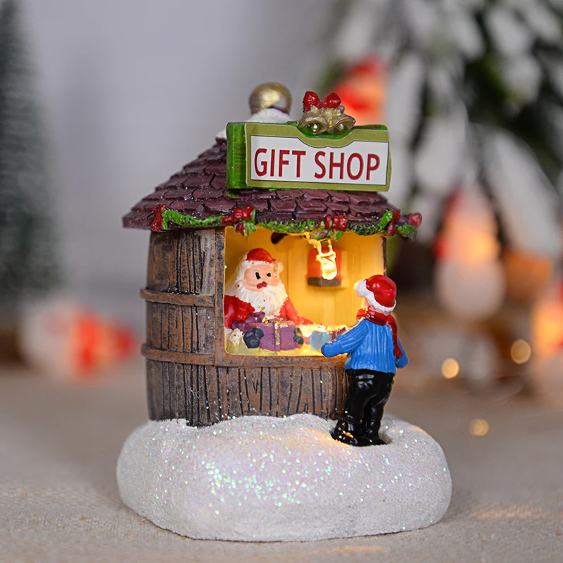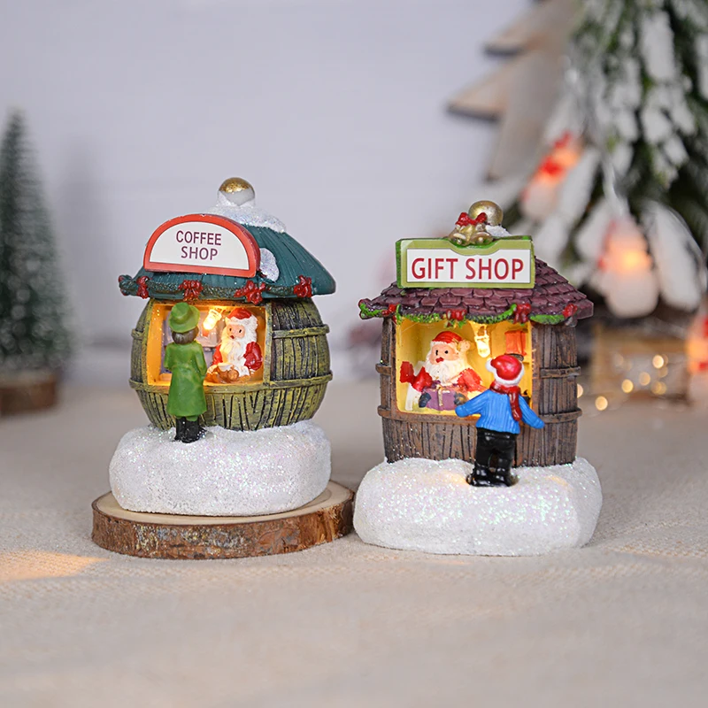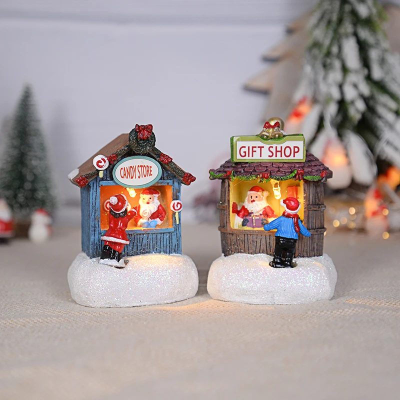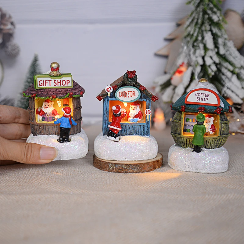 Ornement de maison du père Noël LED en résine, décoration de la maison de bureau, artisanat de paysage de cabine plonger oyant, cadeau de Noël, nouvel an, 2025