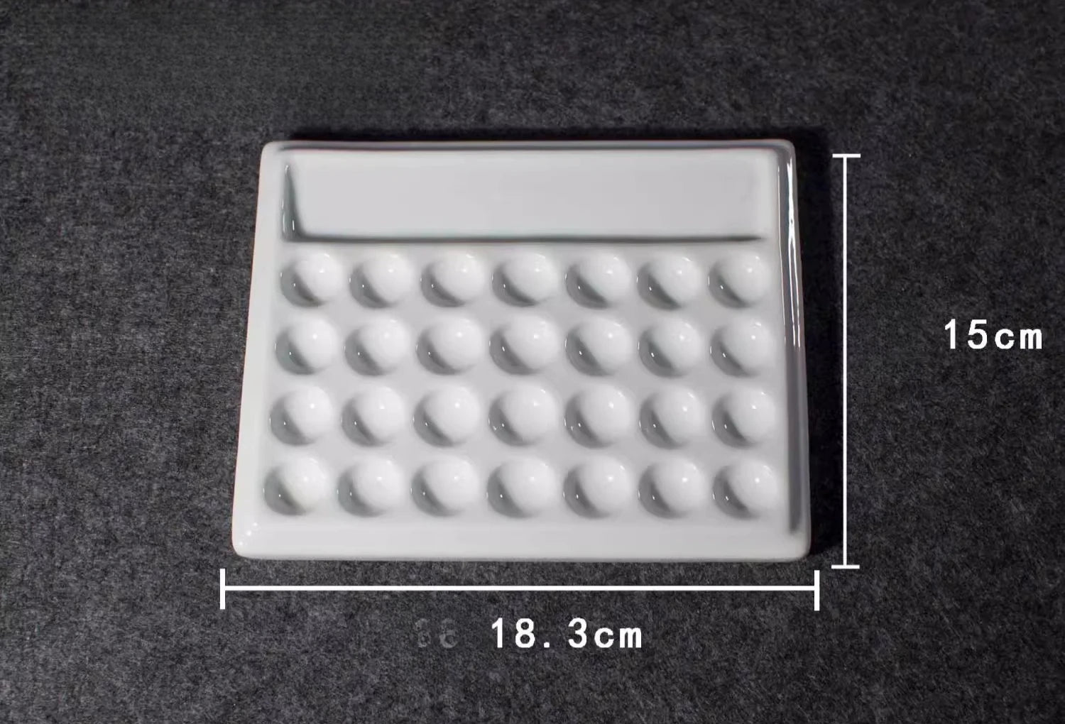 Palette de couleurs en céramique blanc pur à 28 trous, carrée et facile à nettoyer, peinture chinoise/aquarelle/palette, outil de peinture artistique pour étudiants