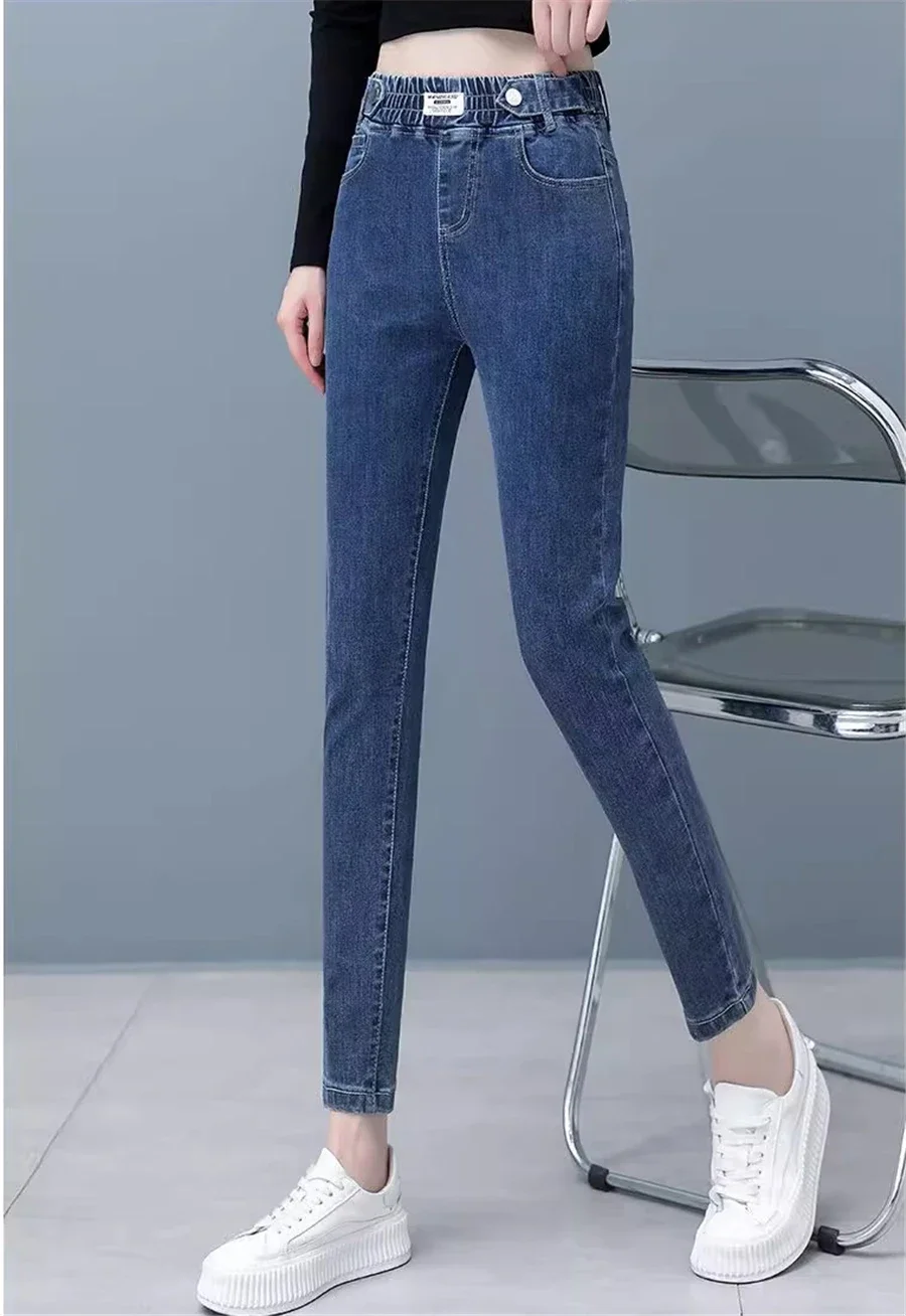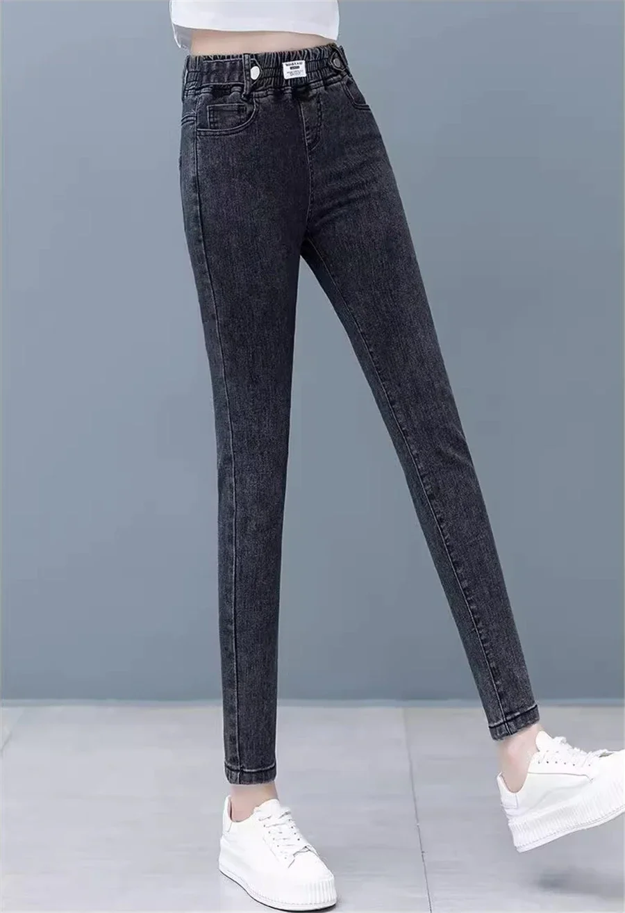 Pantalon crayon en denim skinny épais pour femme, jean décontracté, doublé de velours en peluche, taille haute, coréen, chaud, commandé, hiver, nouveau