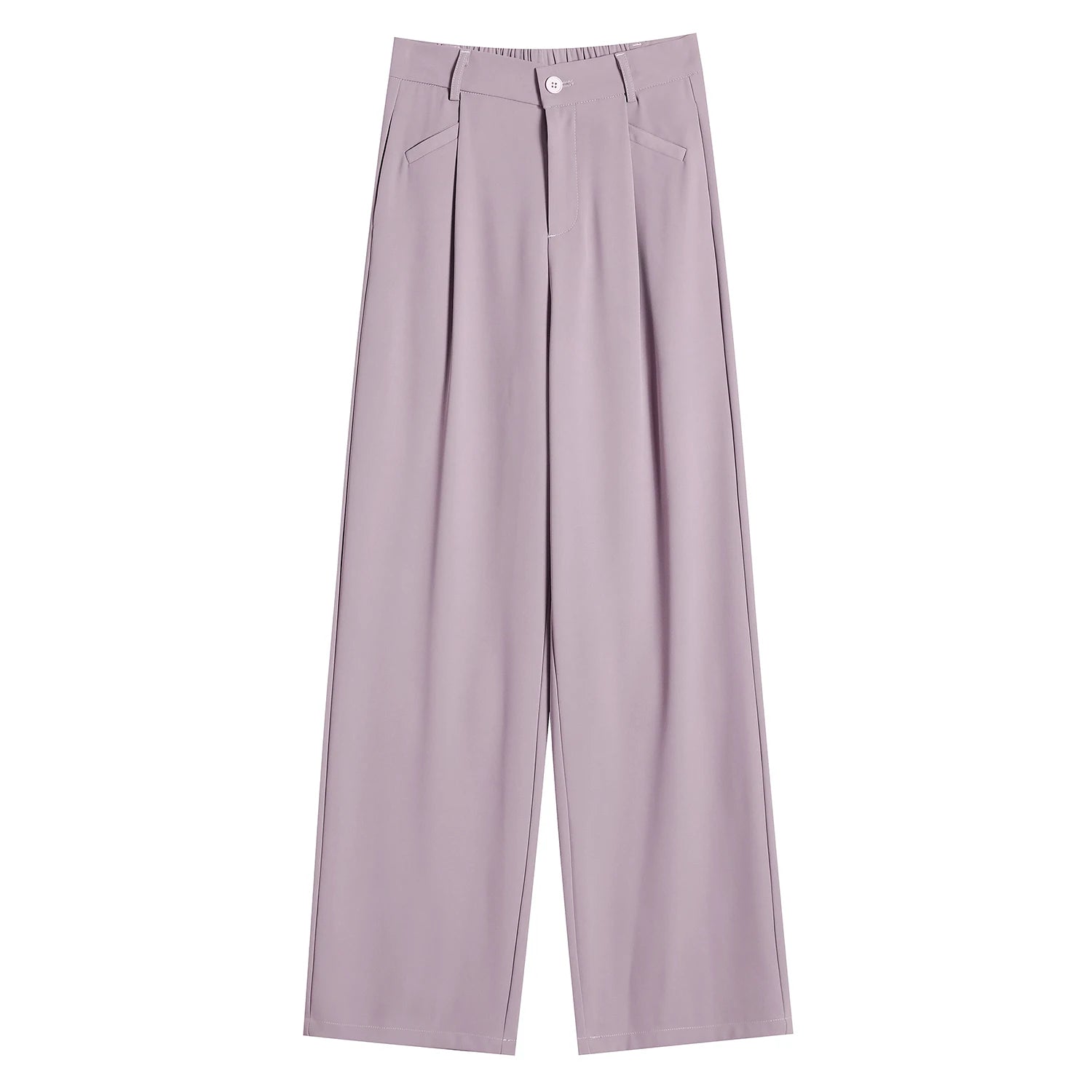 Pantalon de costume violet à jambes larges pour femmes, taille haute, ample, droit, décontracté, Slim Fit, nouvelle collection printemps été 2025