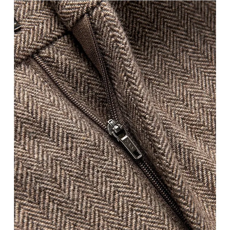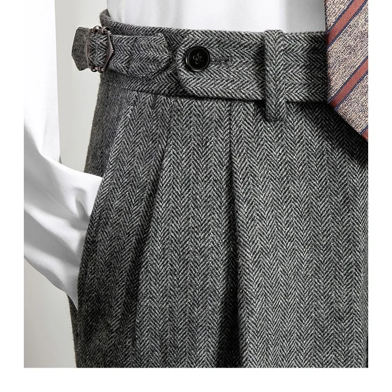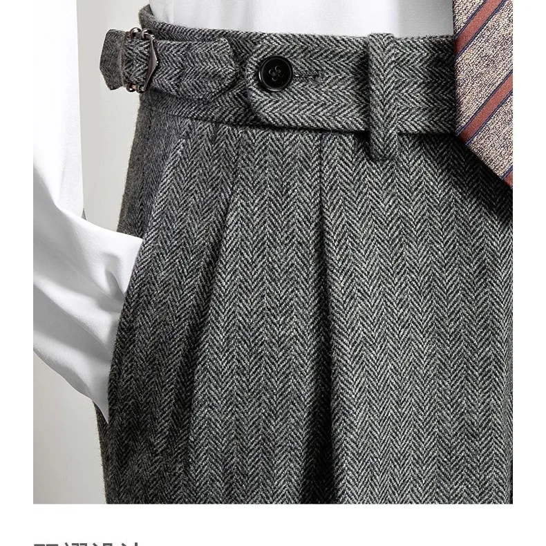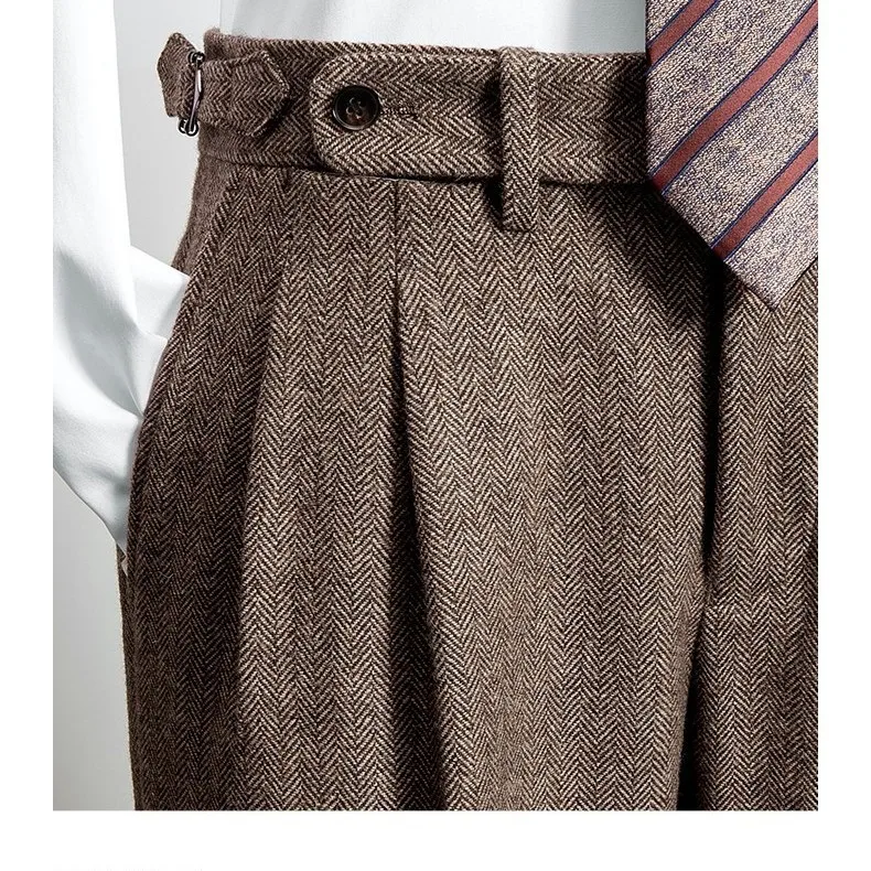 Pantalon Long en Tweed de laine pour homme, vêtement rétro, taille haute, chaud, ample, droit, costume, collection automne-hiver 20224, F319