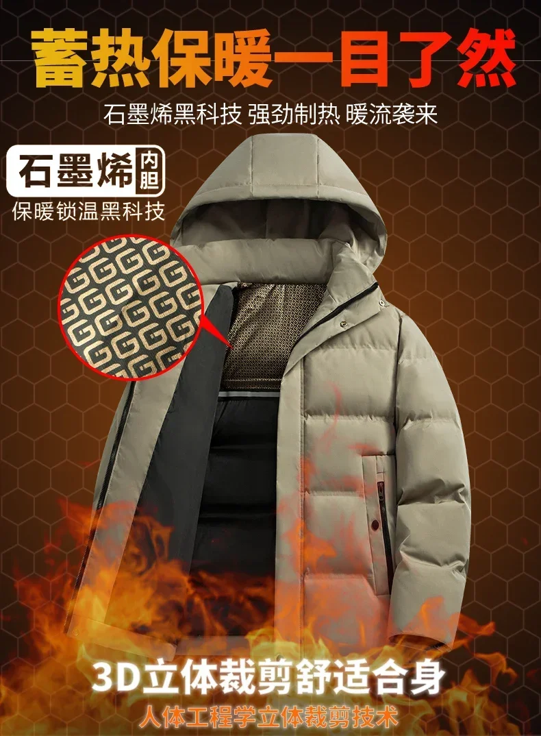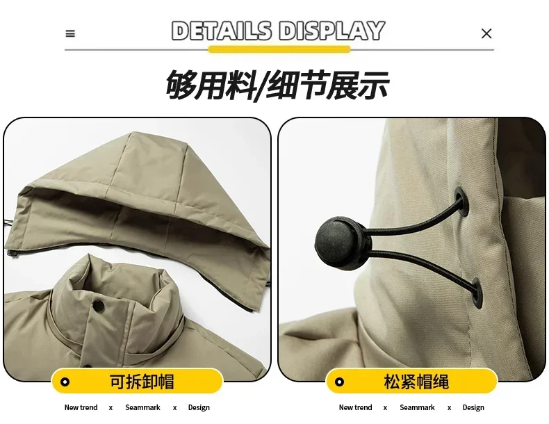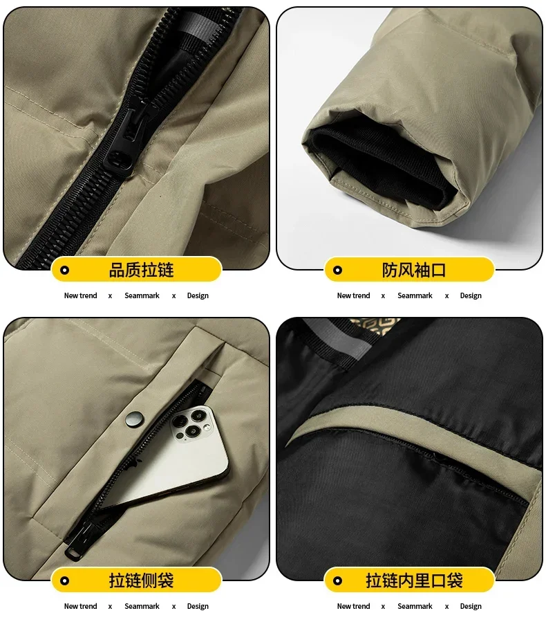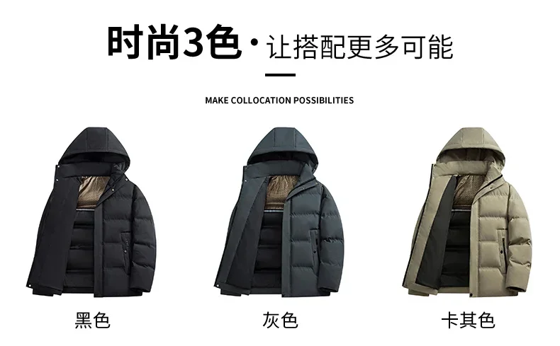 Parka décontractée à capuche pour hommes d'affaires, vêtements d'extérieur imperméables, chaud, sourire, veste en coton épais, extérieur, coupe-vent, hiver