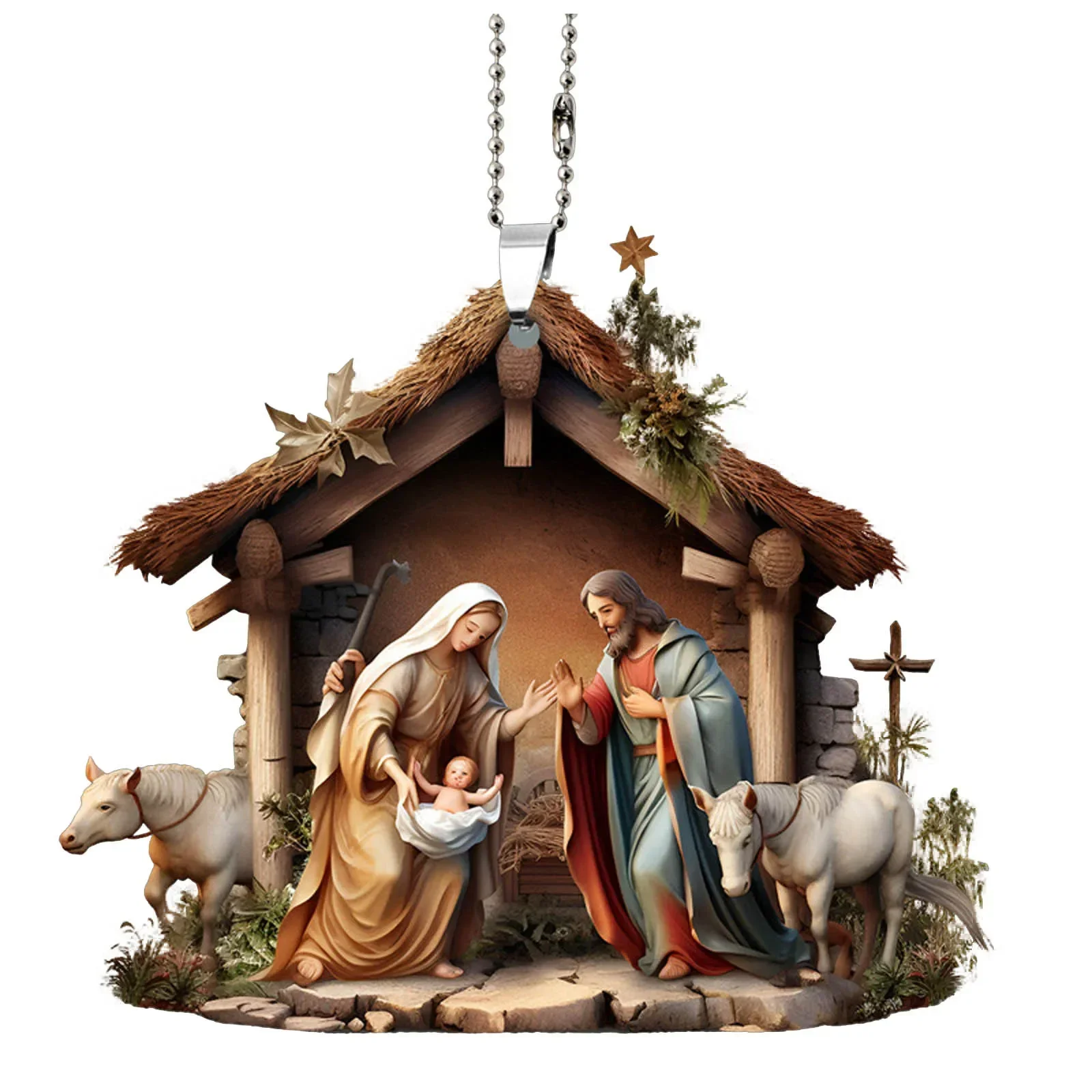 Pendentif arbre de noël jésus, ornement, scène de prière familiale, pendentif de voiture de couleur vive, décorations pour la maison